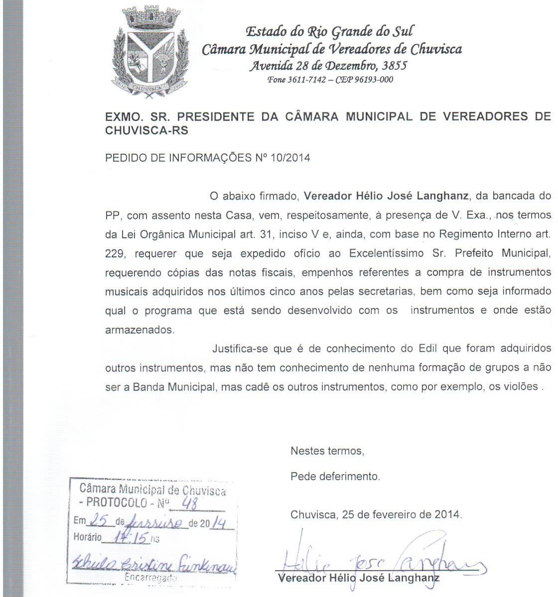 Titulo: Pedido de Informações nº 10/2014