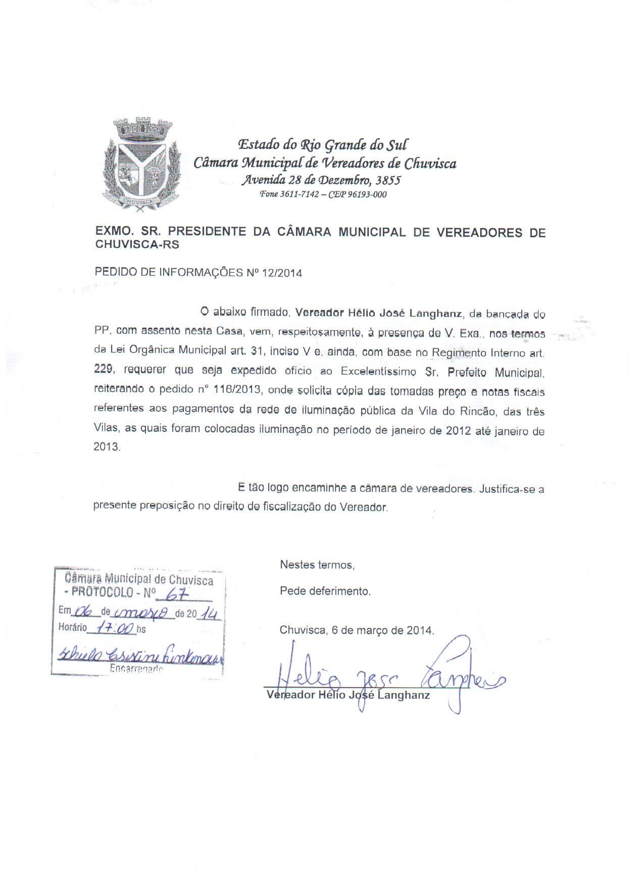 Titulo: Pedido de Informações nº 12/2014