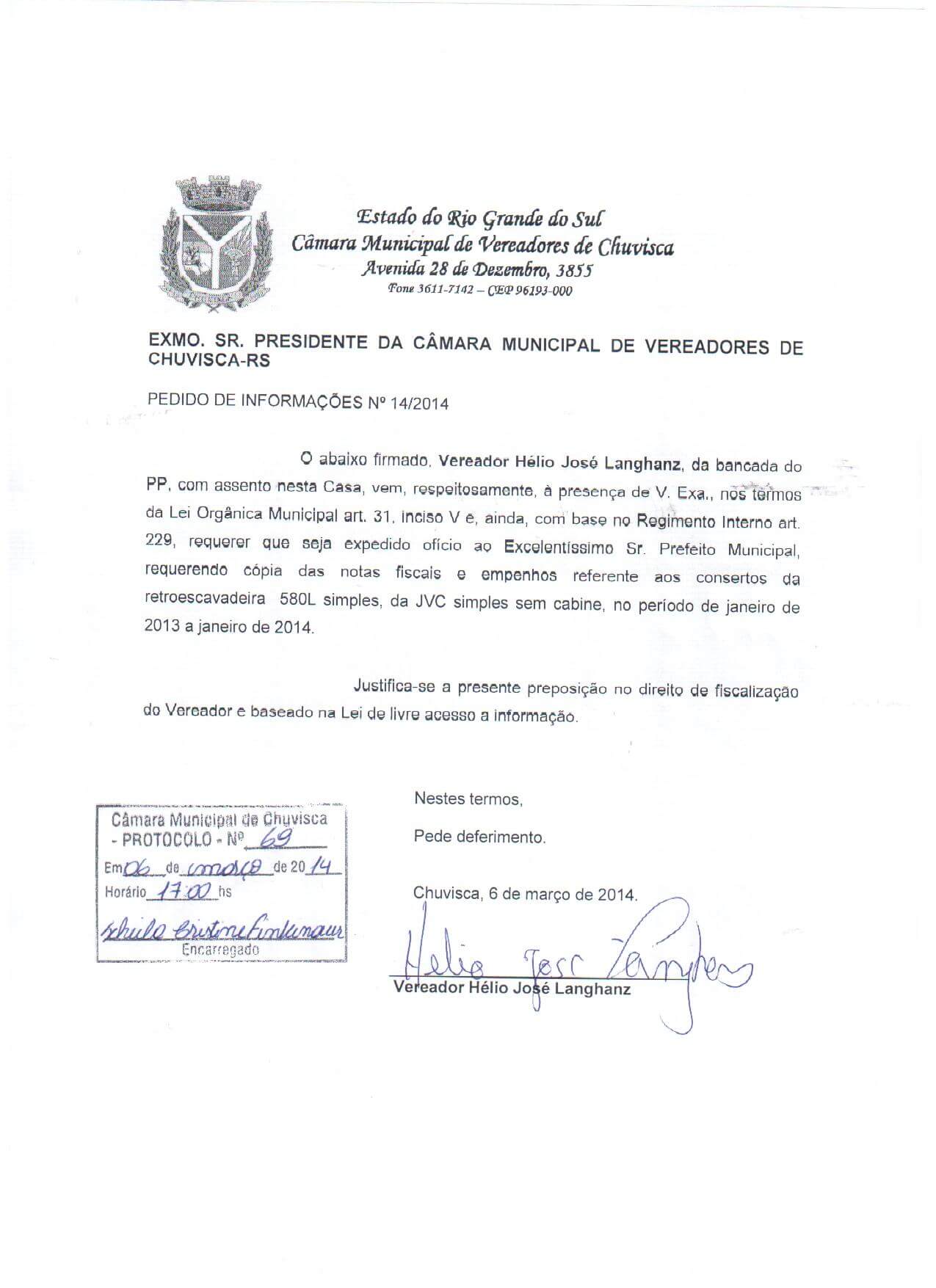 Titulo: Pedido de Informações nº 14/2014