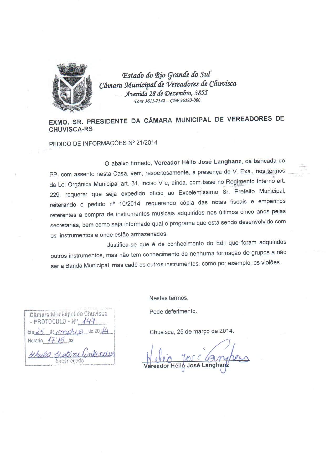 Titulo: Pedido de Informações nº 21/2014