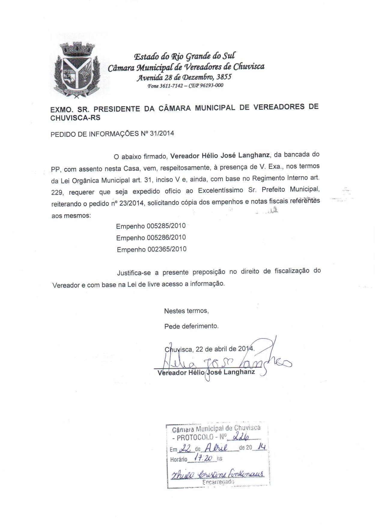 Titulo: Pedido de Informações nº 31/2014