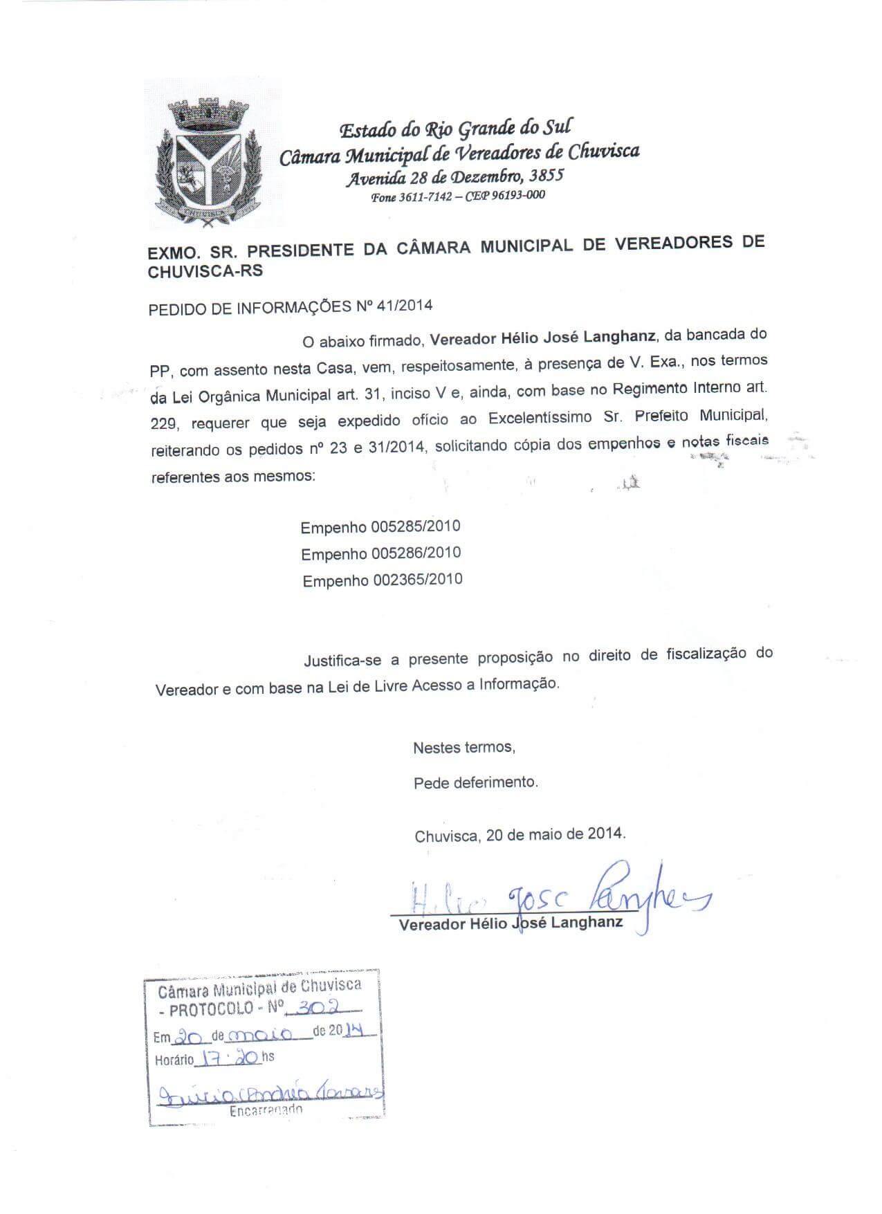 Titulo: Pedido de Informações nº 41/2014