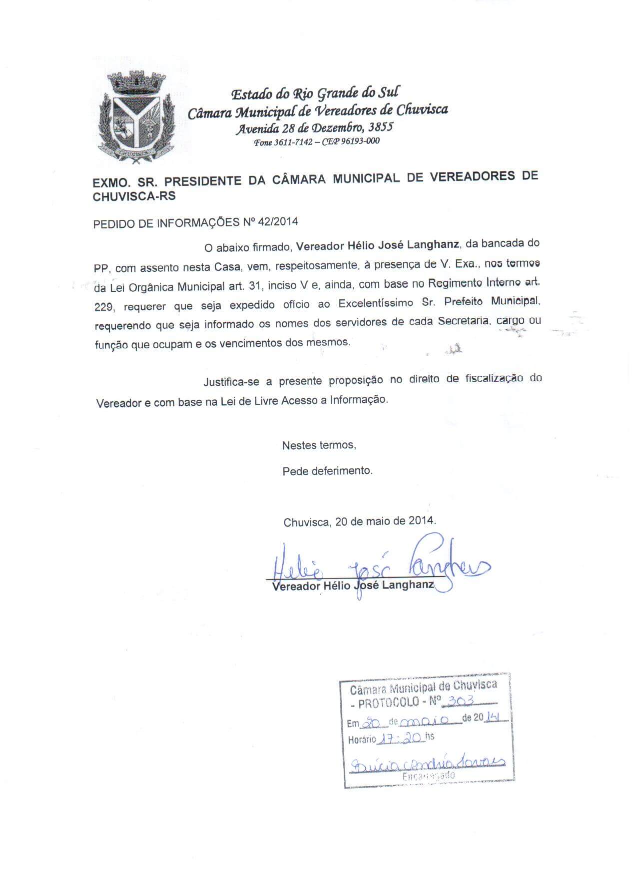Titulo: Pedido de Informações nº 42/2014
