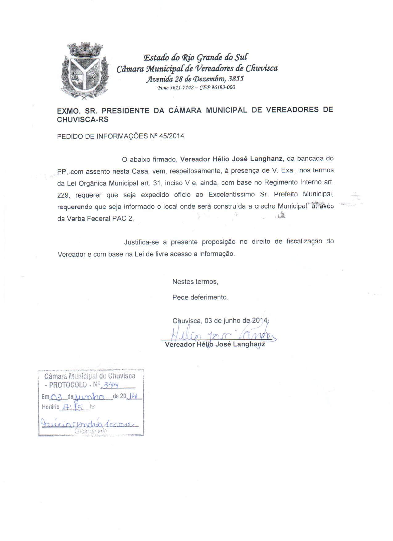 Titulo: Pedido de Informações nº 45/2014
