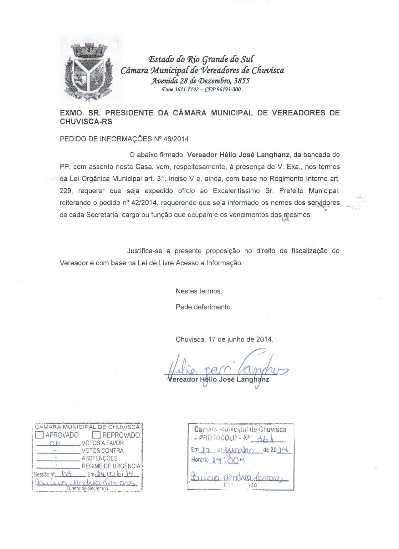 Titulo: Pedido de Informações nº 46/2014