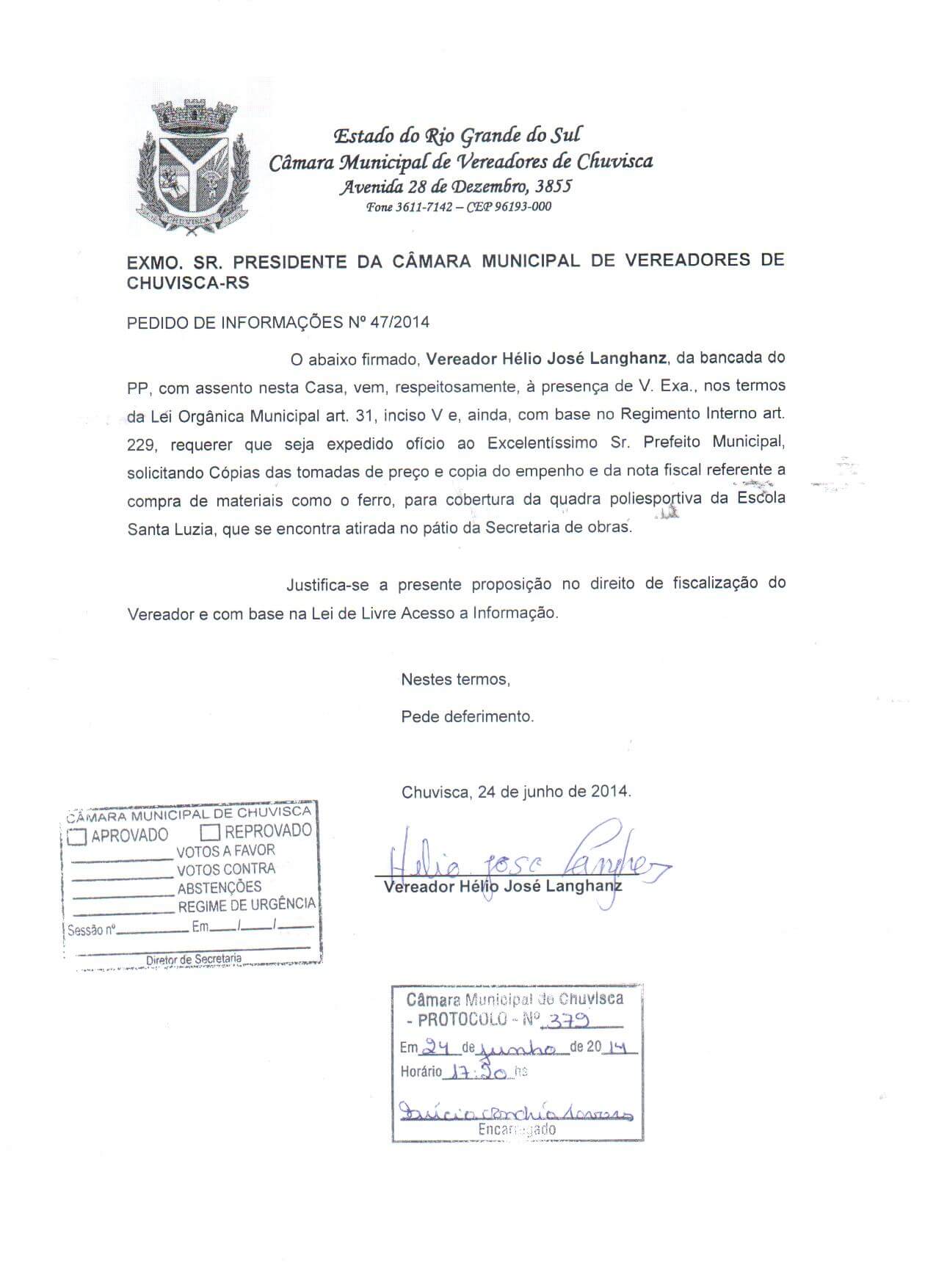 Titulo: Pedido de Informações nº 47/2014