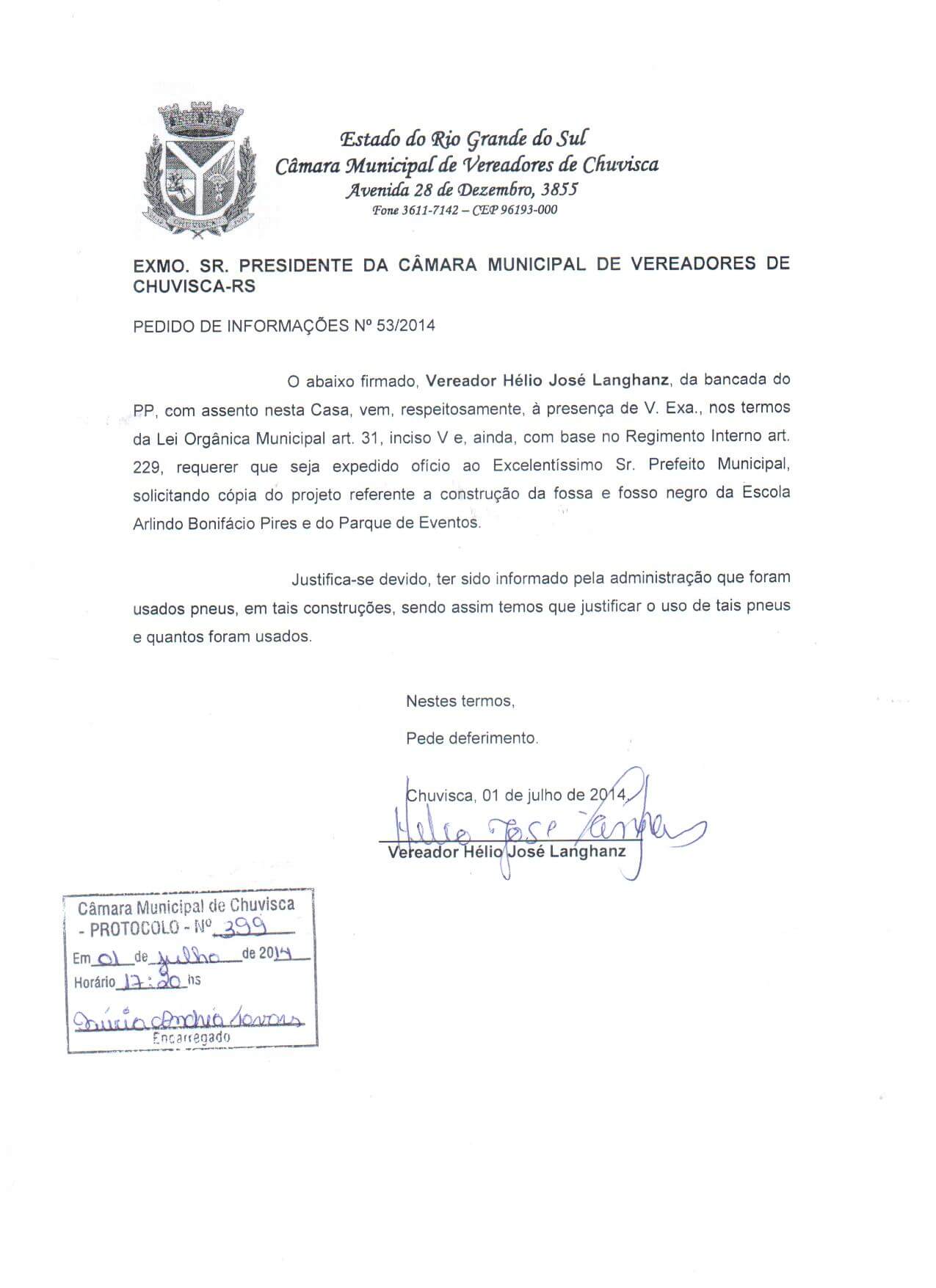 Titulo: Pedido de Informações nº 53/2014