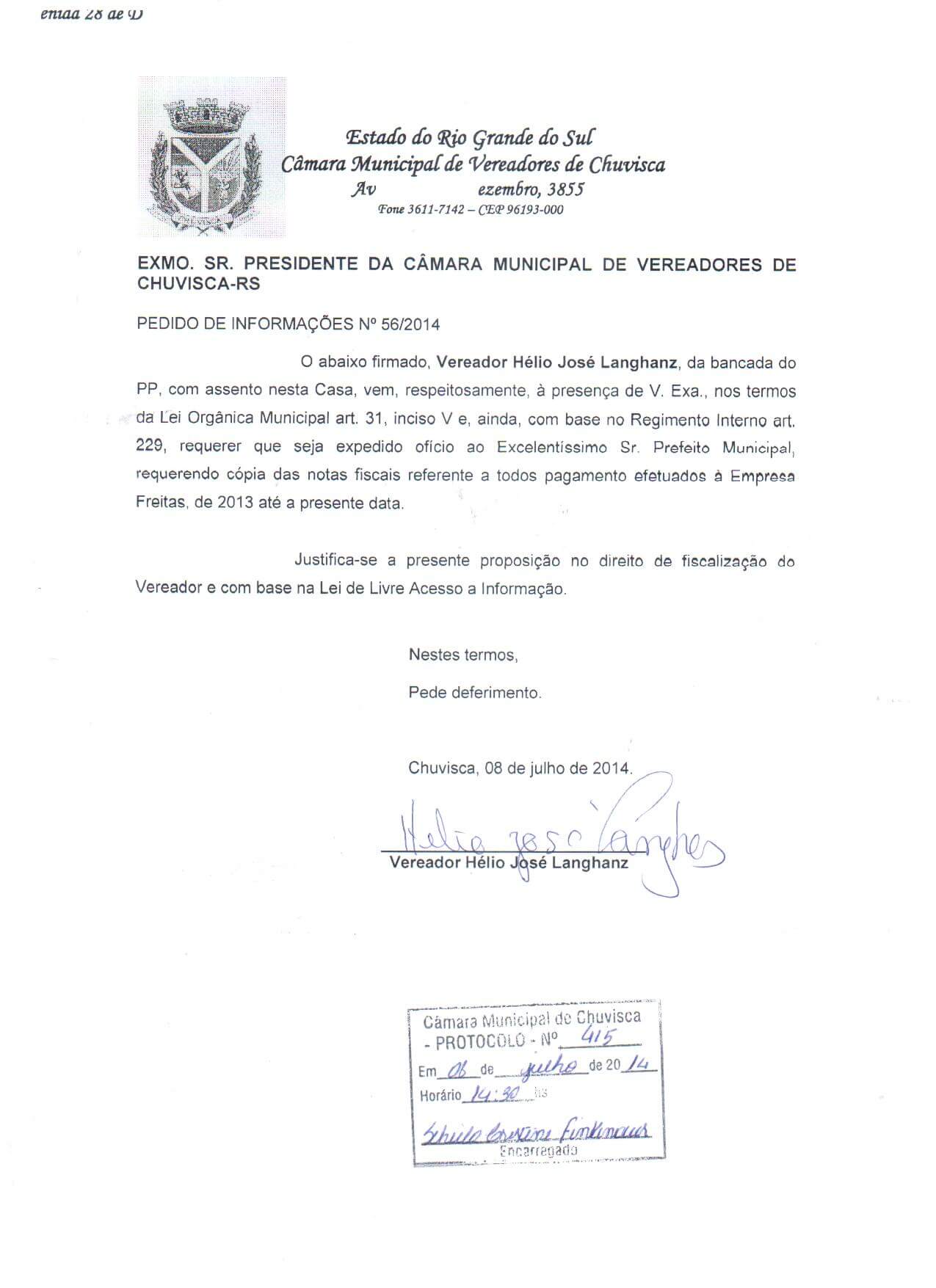 Titulo: Pedido de Informações nº 56/2014