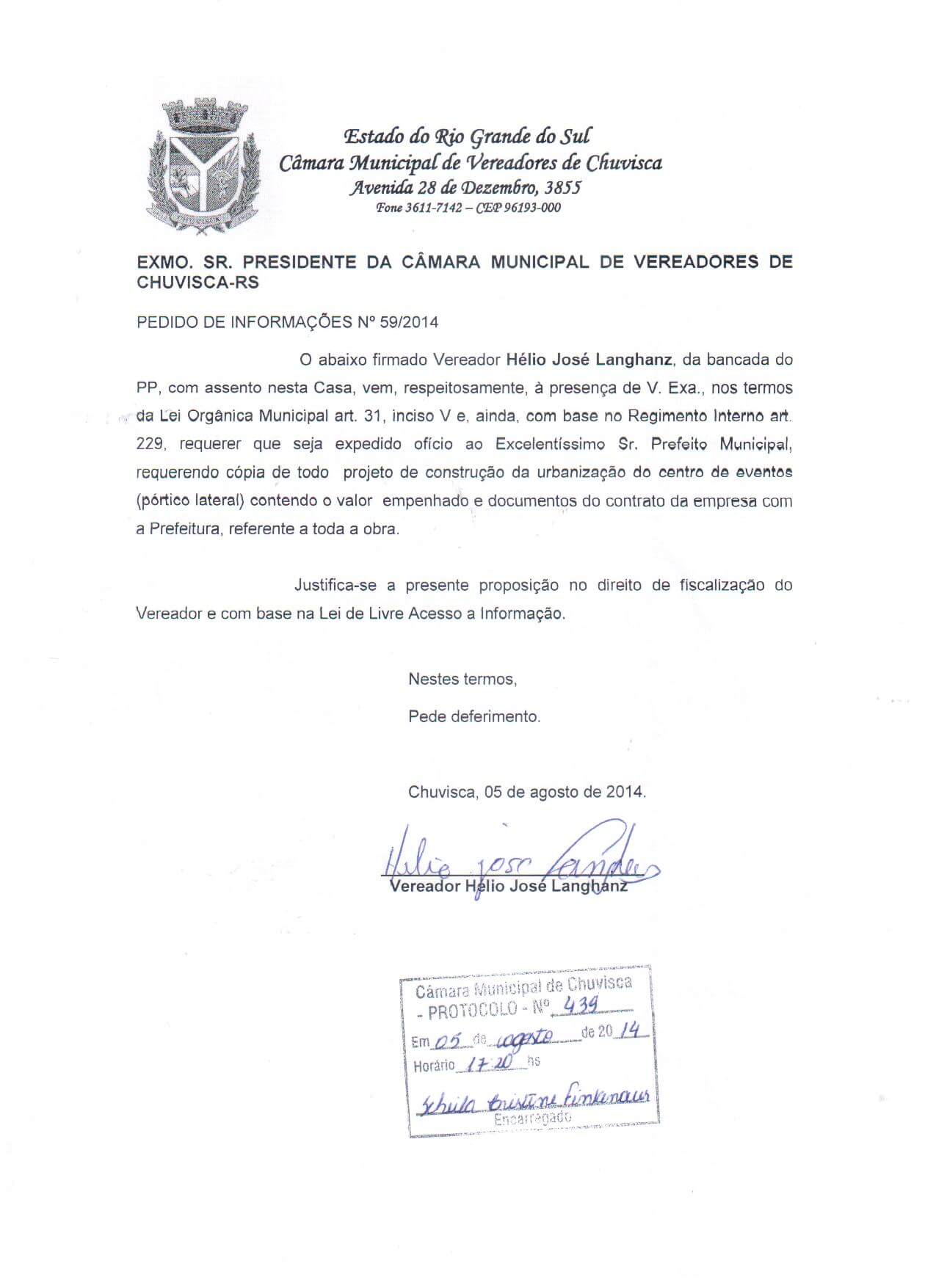 Titulo: Pedido de Informações nº 59/2014