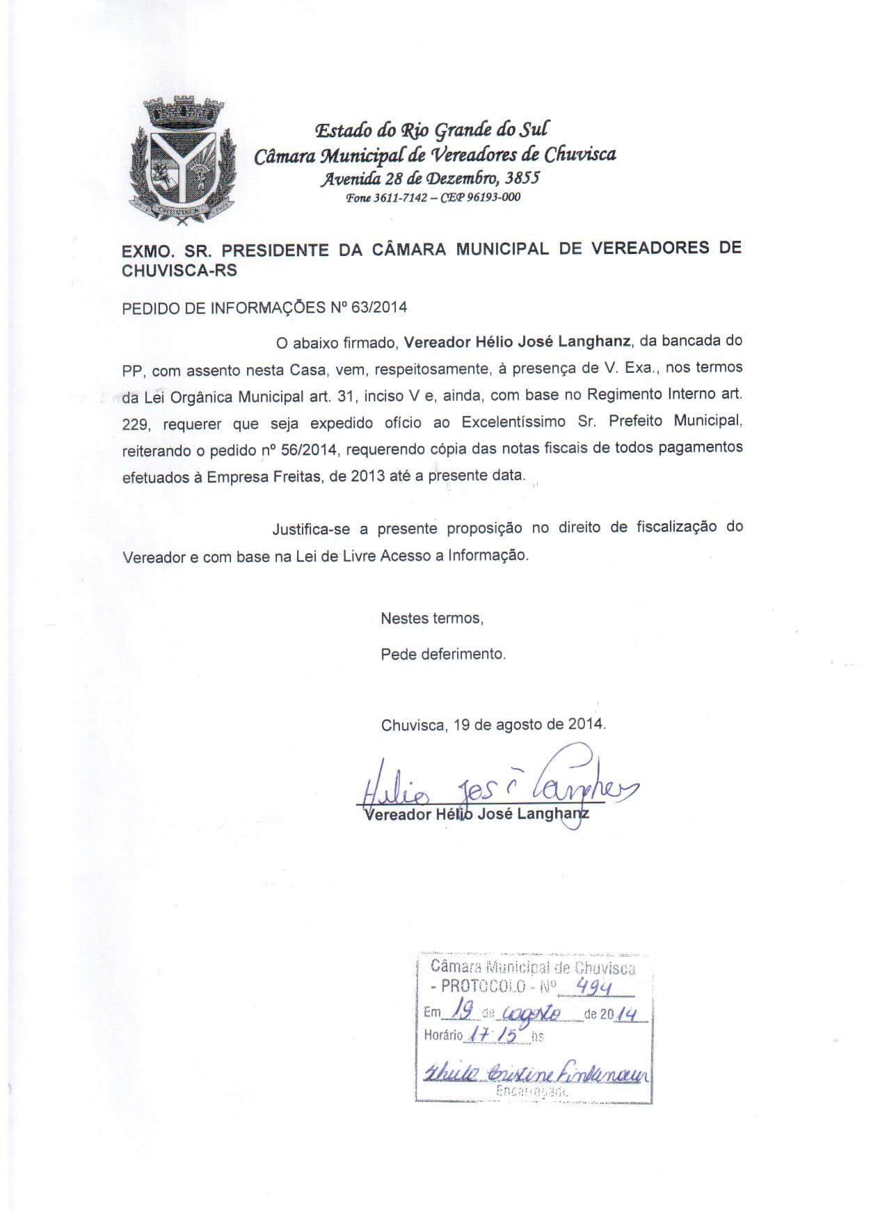 Titulo: Pedido de Informações nº 63/2014