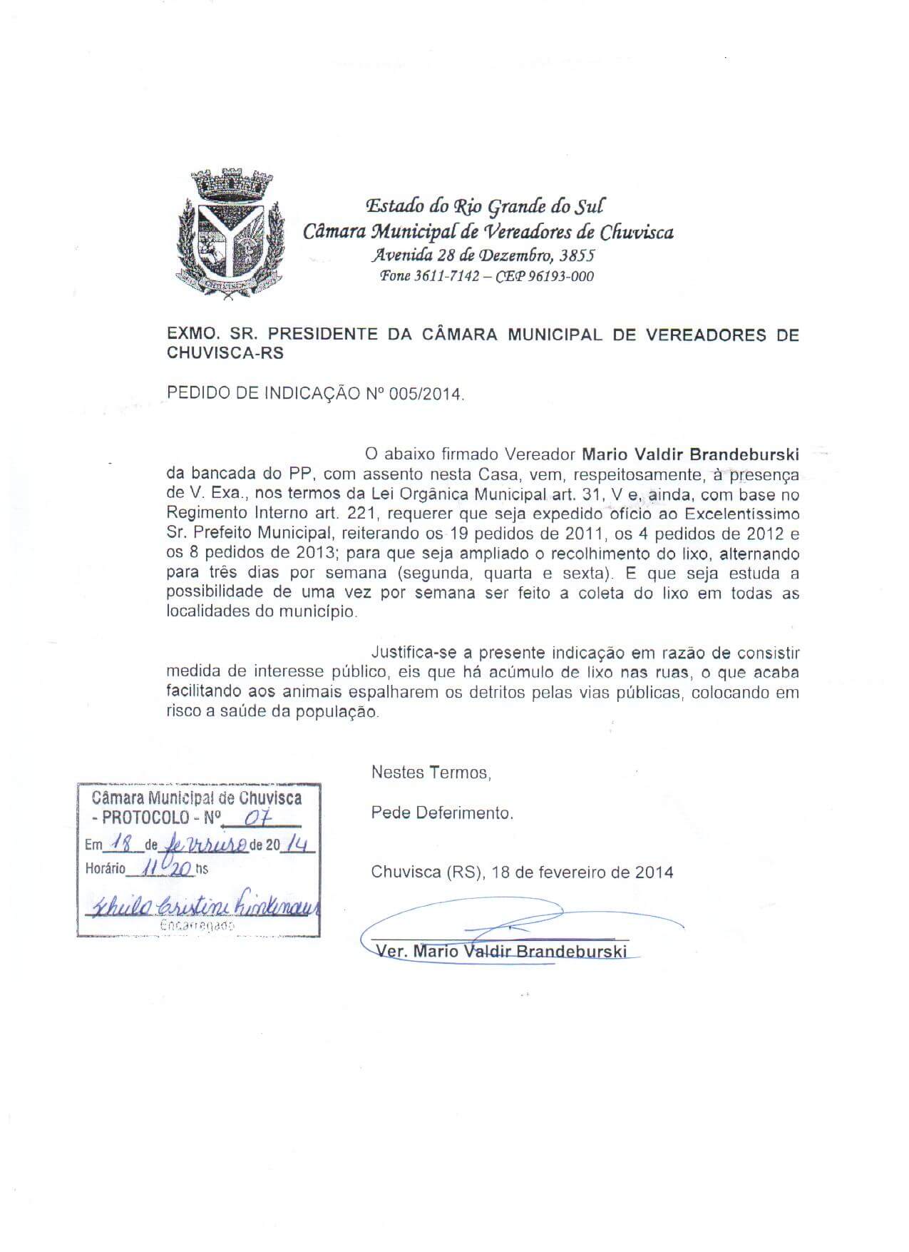 Titulo: Pedido de Indicação nº 05/2014