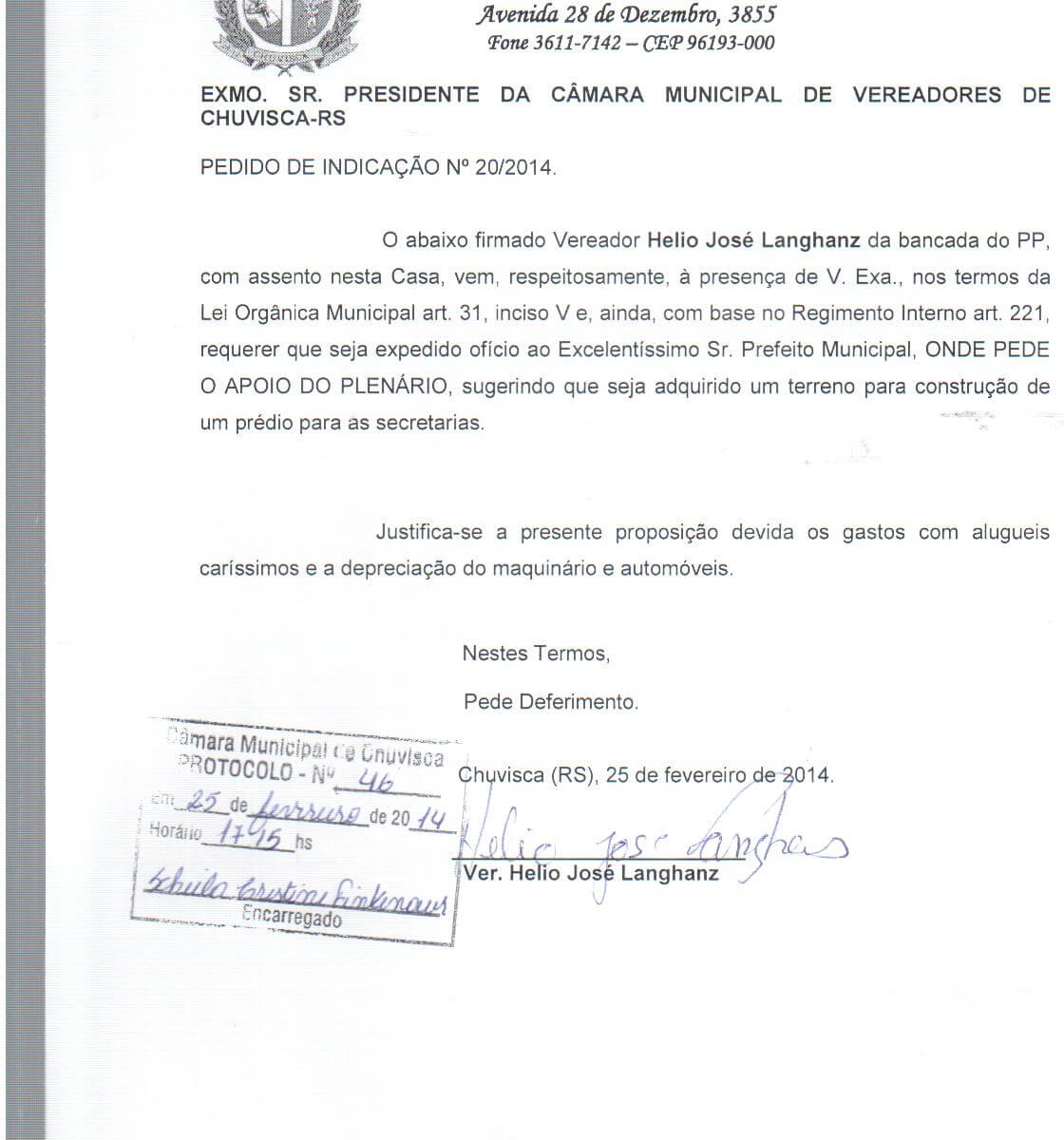 Vereador(es): Helio José Langhanz, Helio José Langhanz, Helio José Langhanz