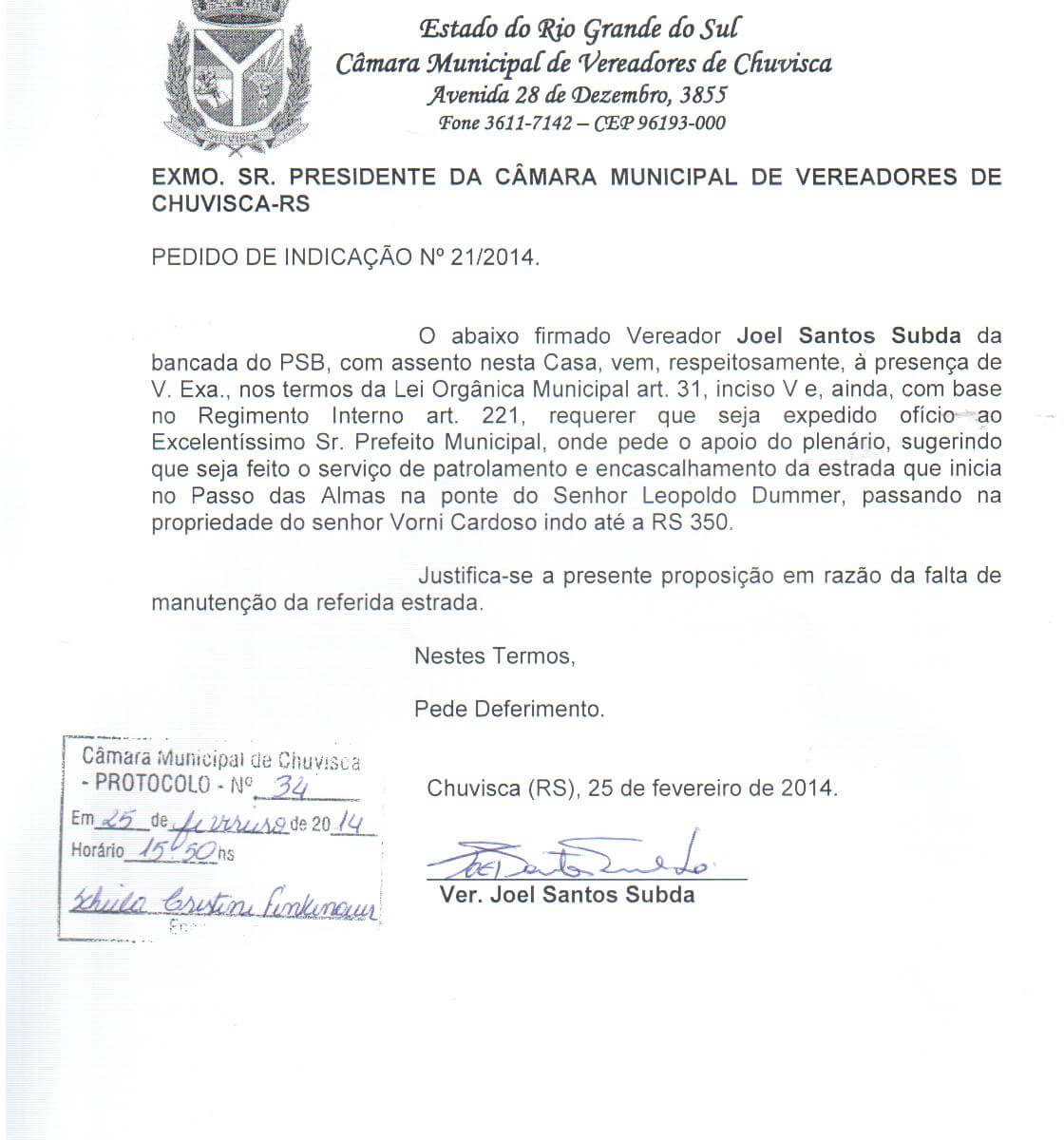 Vereador(es): Joel Santos Subda