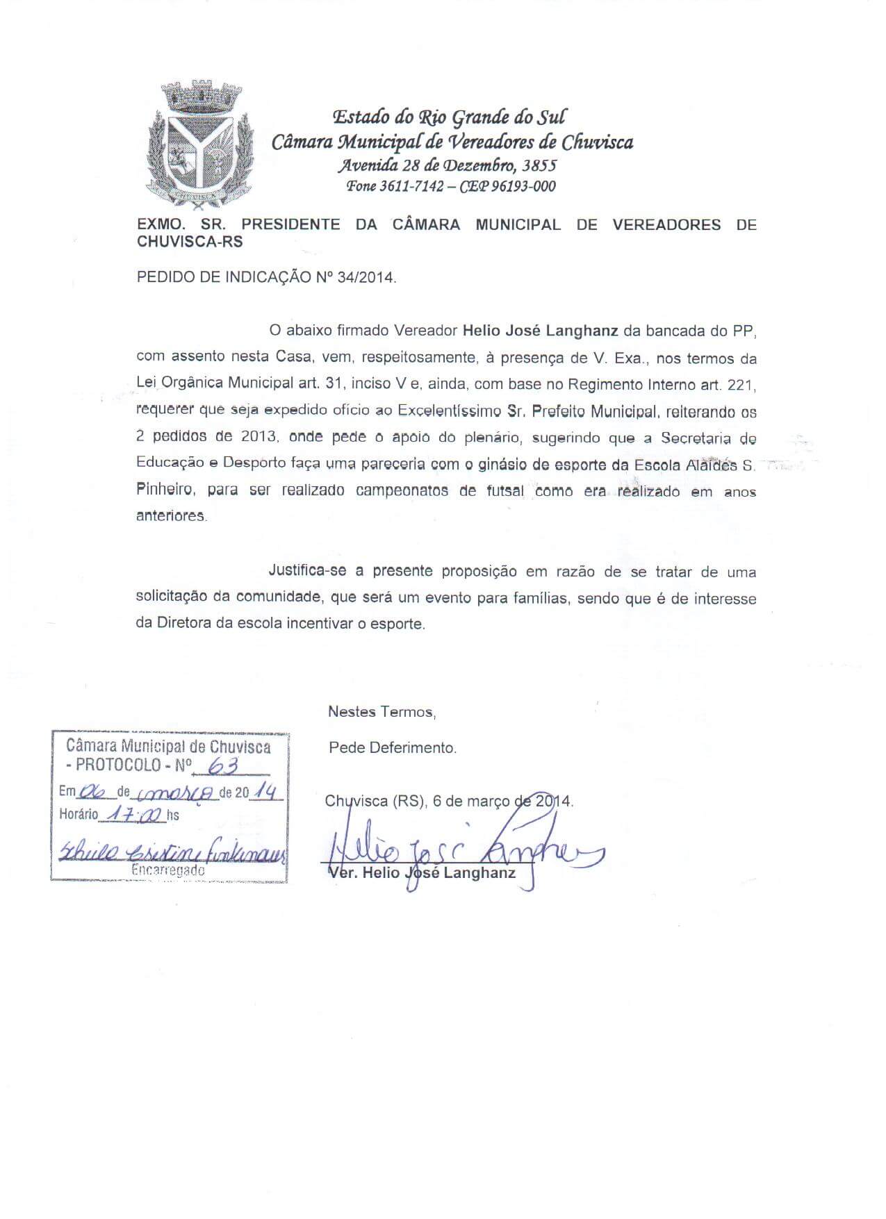 Titulo: Pedido de Indicação nº 34/2014