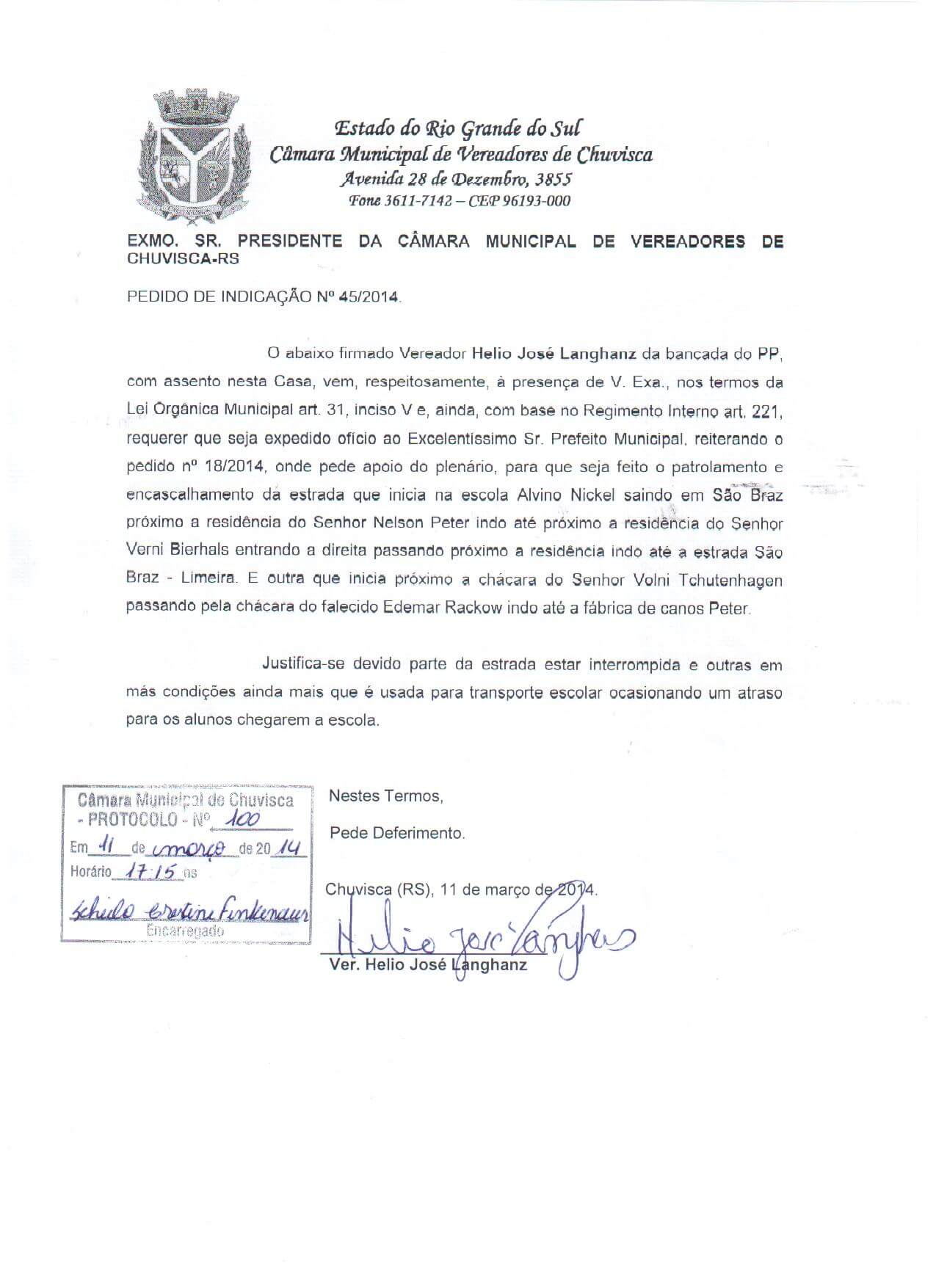 Titulo: Pedido de Indicação nº 45/2014