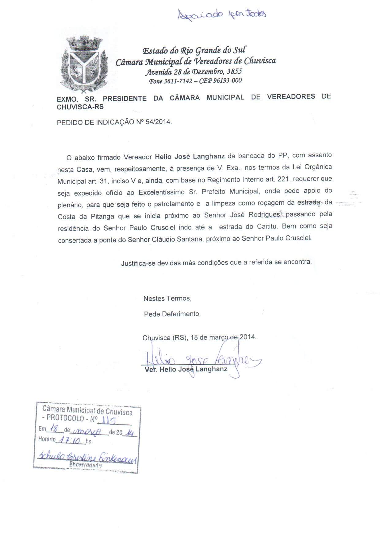 Vereador(es): Helio José Langhanz, Helio José Langhanz, Helio José Langhanz, Helio José Langhanz