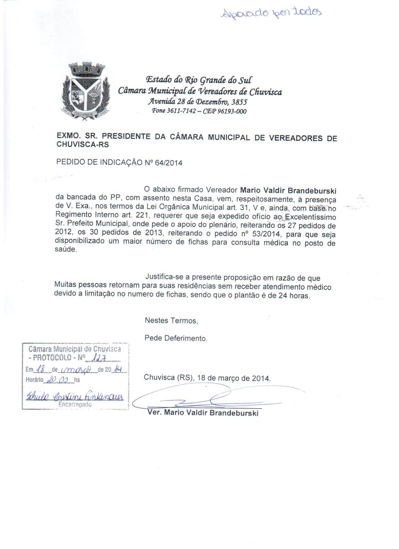 Vereador(es): Mario Valdir Brandeburski, Mario Valdir Brandeburski, Mario Valdir Brandeburski, Mario Valdir Brandeburski, Mario Valdir Brandeburski