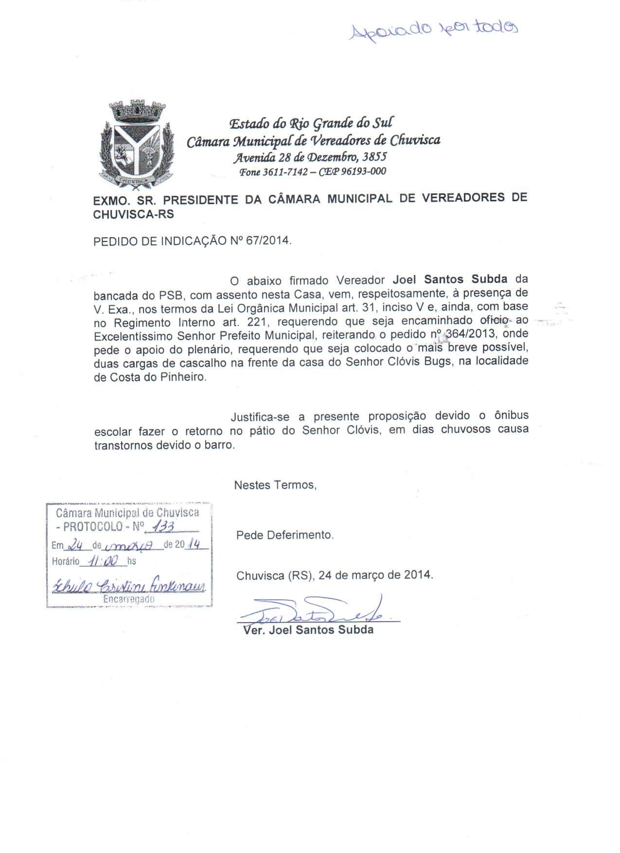 Titulo: Pedido de Indicação nº 67/2014