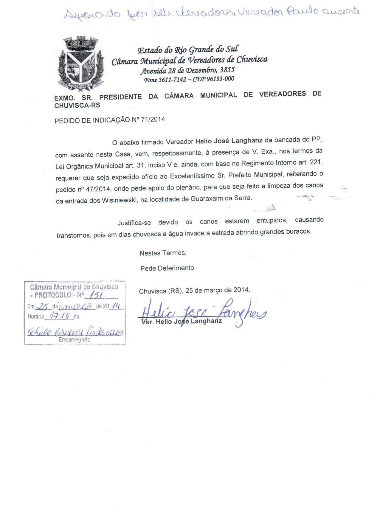 Titulo: Pedido de Indicação nº 71/2014