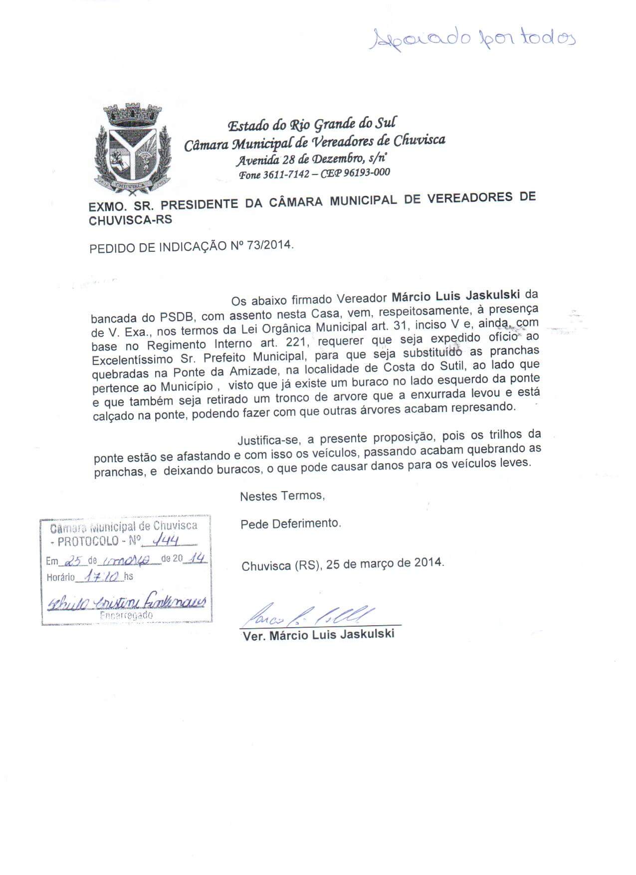 Vereador(es): Márcio Luis Jaskulski, Márcio Luis Jaskulski, Márcio Luis Jaskulski