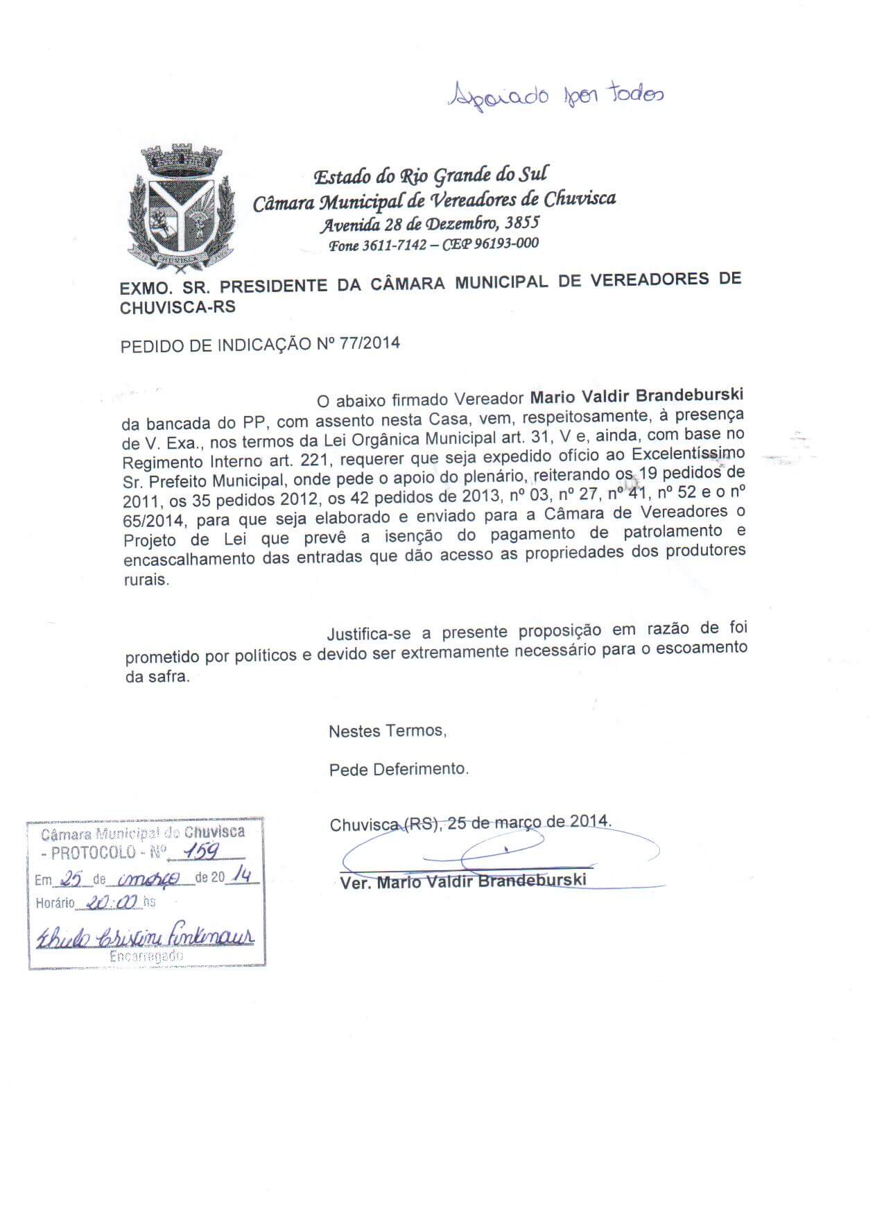 Vereador(es): Mario Valdir Brandeburski, Mario Valdir Brandeburski, Mario Valdir Brandeburski, Mario Valdir Brandeburski, Mario Valdir Brandeburski