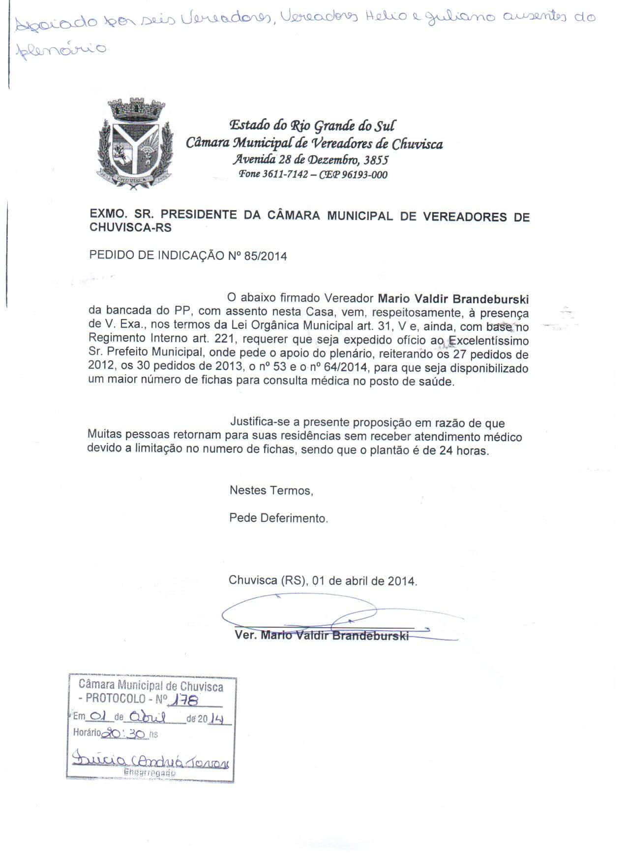 Vereador(es): Mario Valdir Brandeburski, Mario Valdir Brandeburski, Mario Valdir Brandeburski, Mario Valdir Brandeburski, Mario Valdir Brandeburski