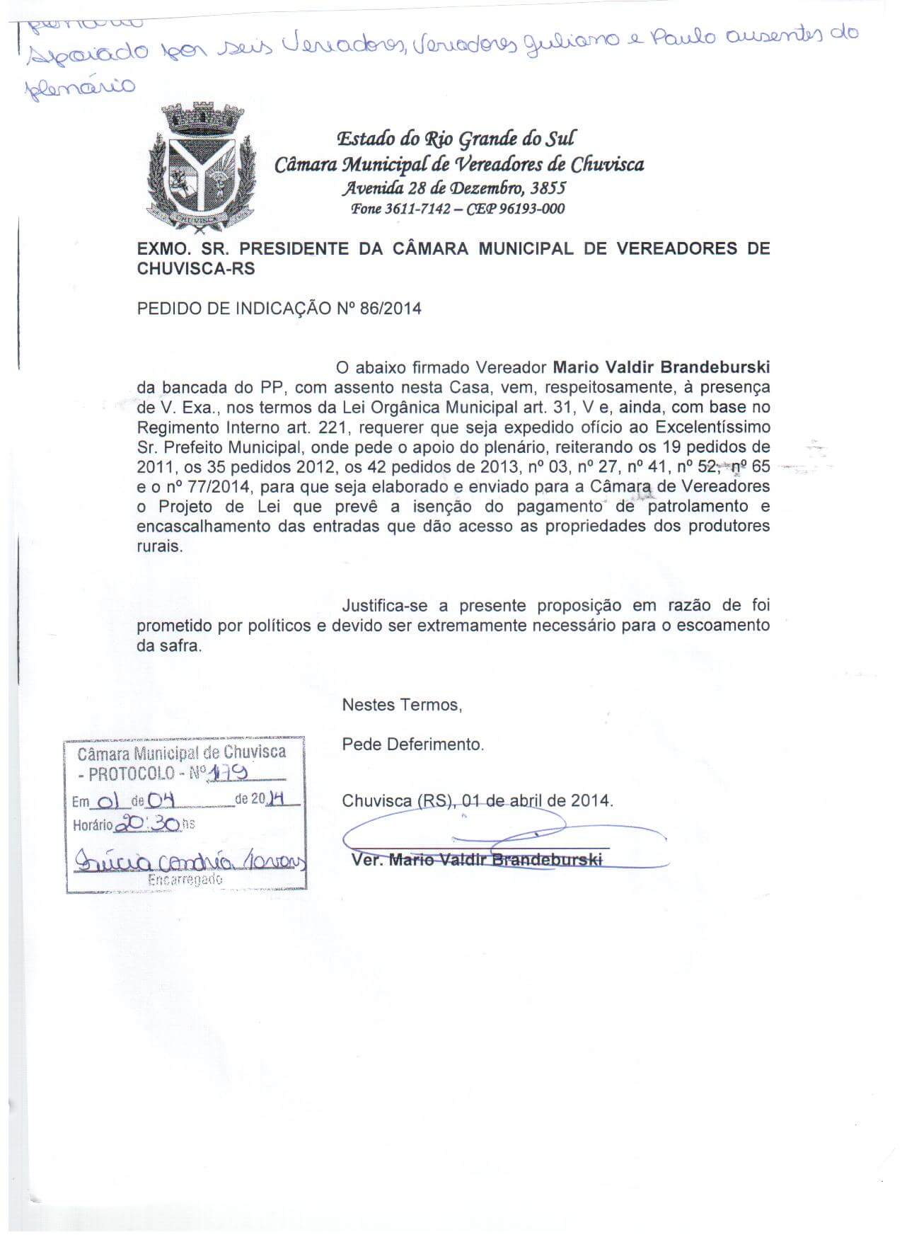 Vereador(es): Mario Valdir Brandeburski, Mario Valdir Brandeburski, Mario Valdir Brandeburski, Mario Valdir Brandeburski, Mario Valdir Brandeburski
