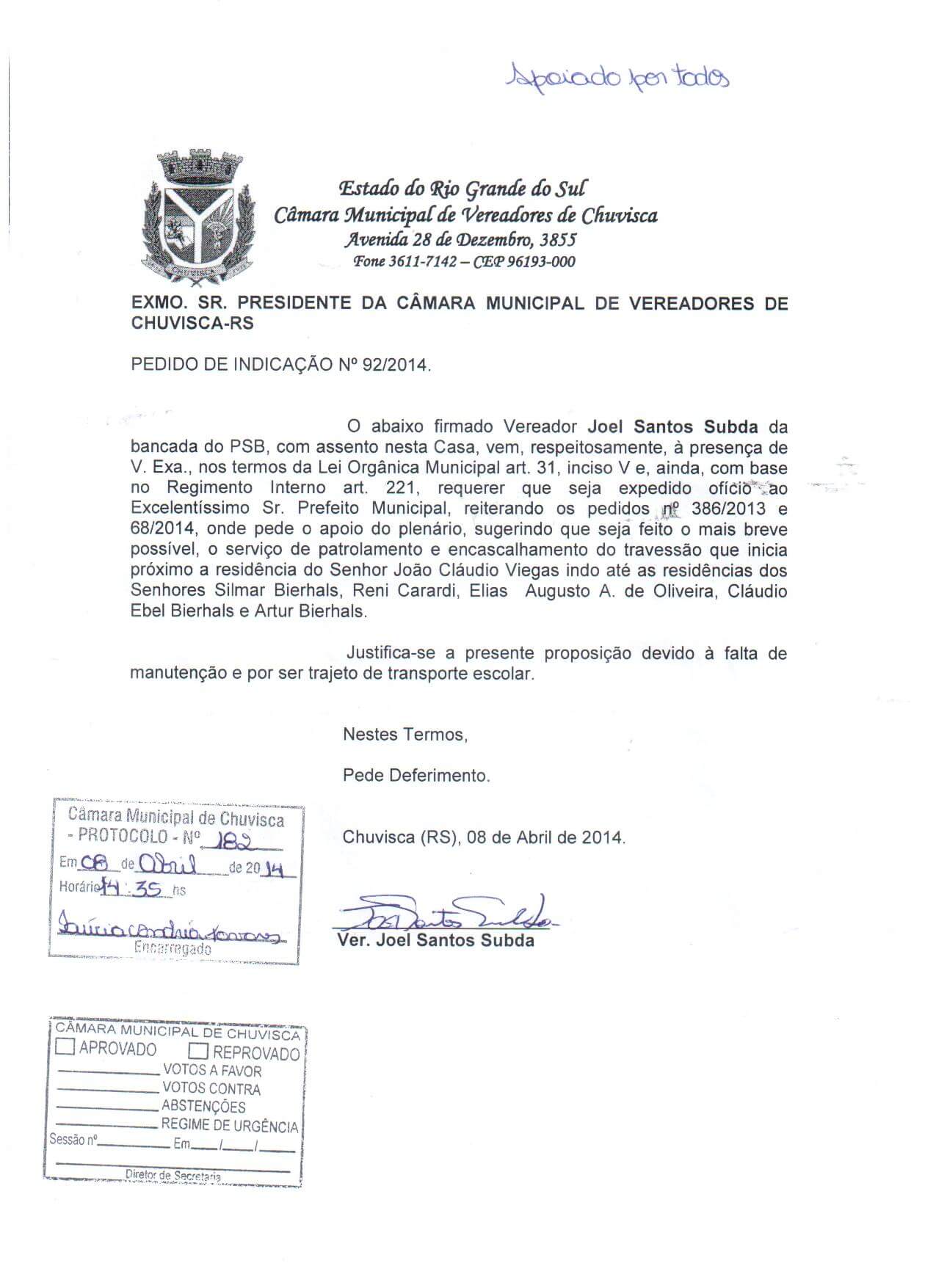 Vereador(es): Joel Santos Subda
