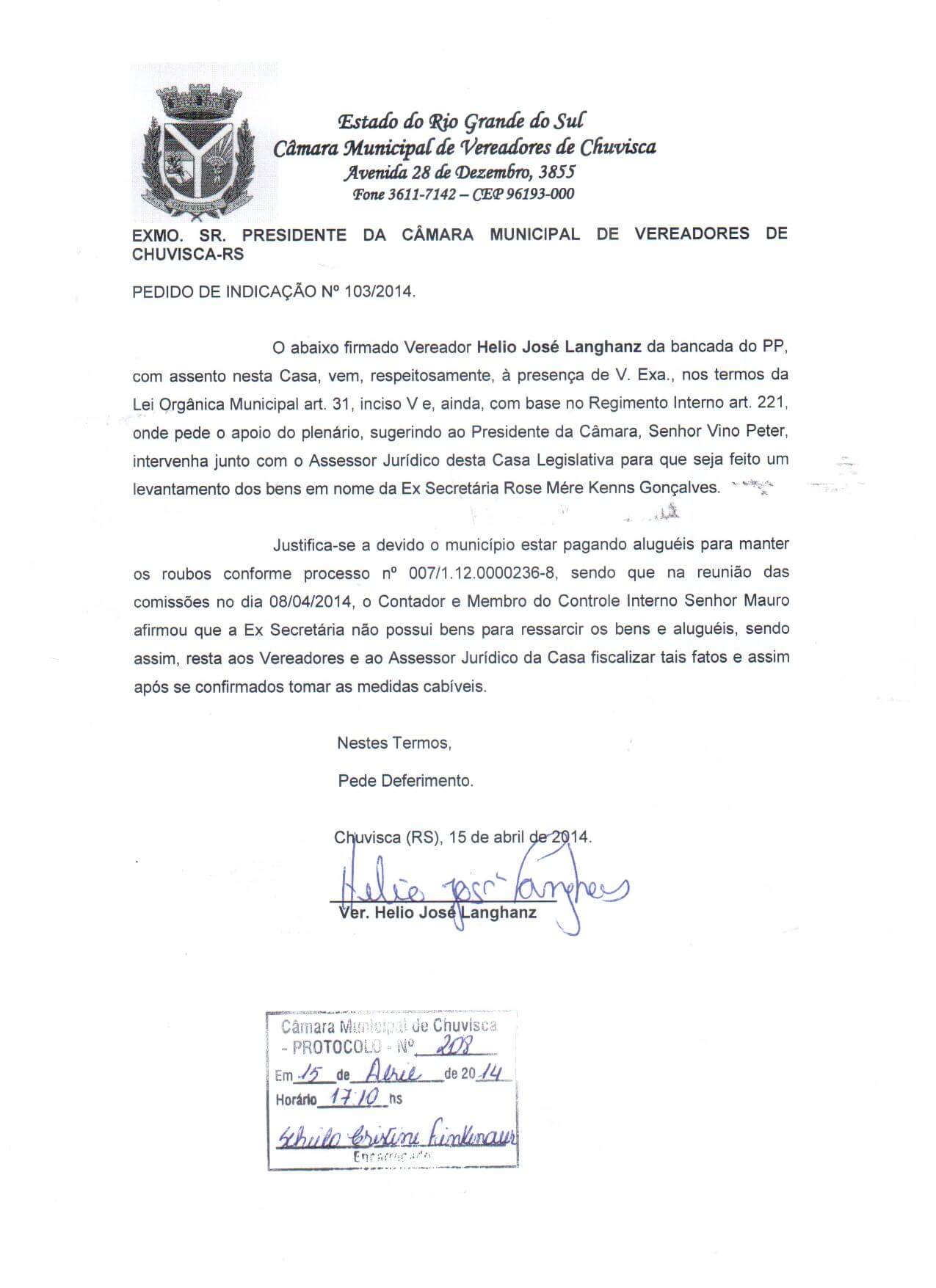 Titulo: Pedido de Indicação nº 103/2014