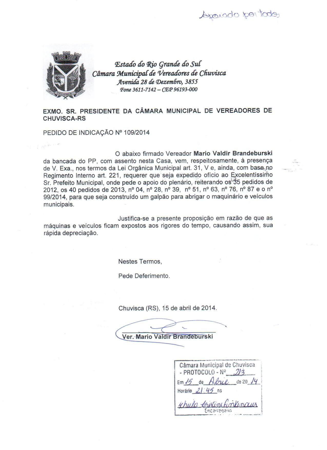 Titulo: Pedido de Indicação nº 109/2014