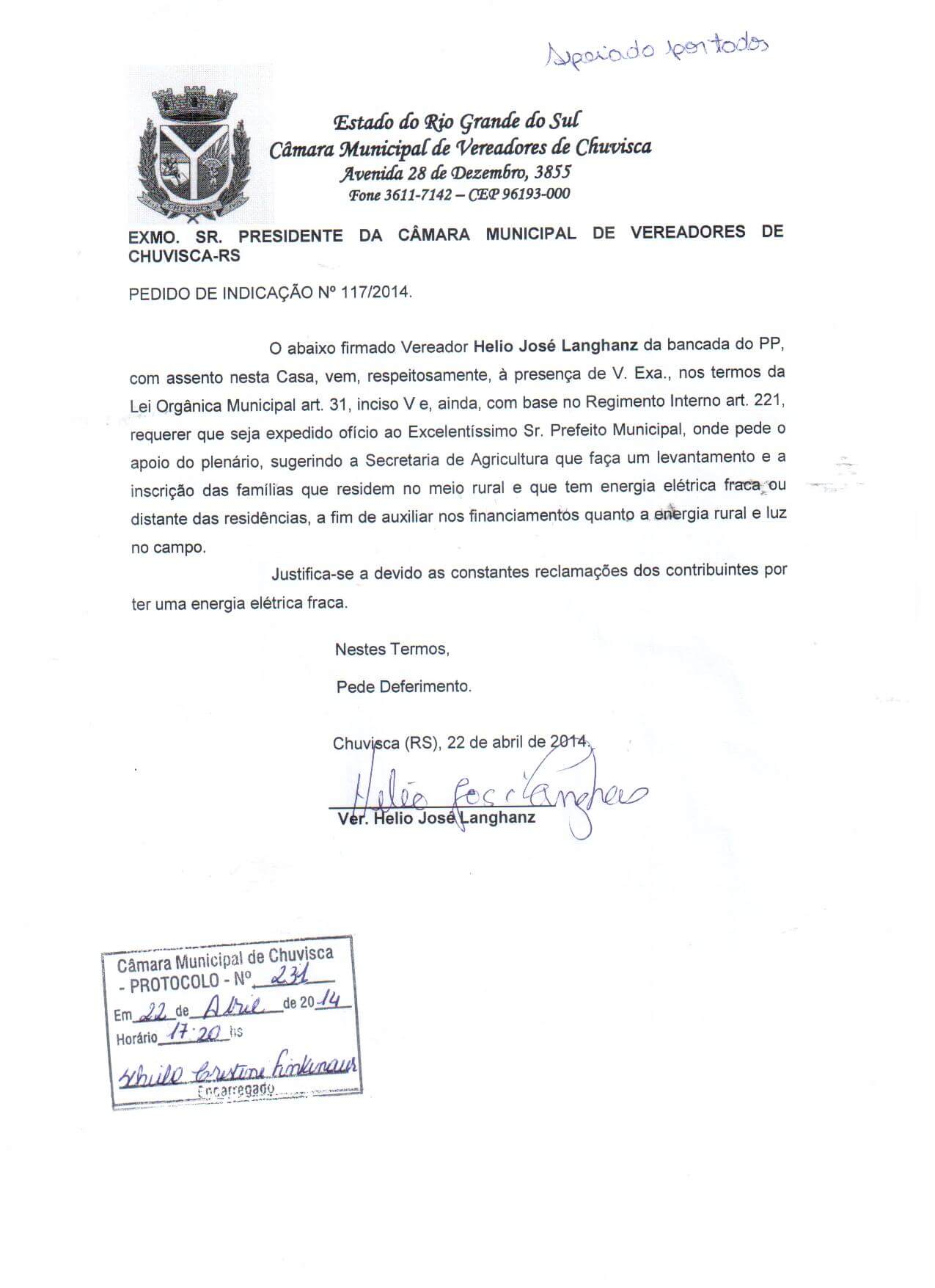 Vereador(es): Helio José Langhanz, Helio José Langhanz, Helio José Langhanz, Helio José Langhanz