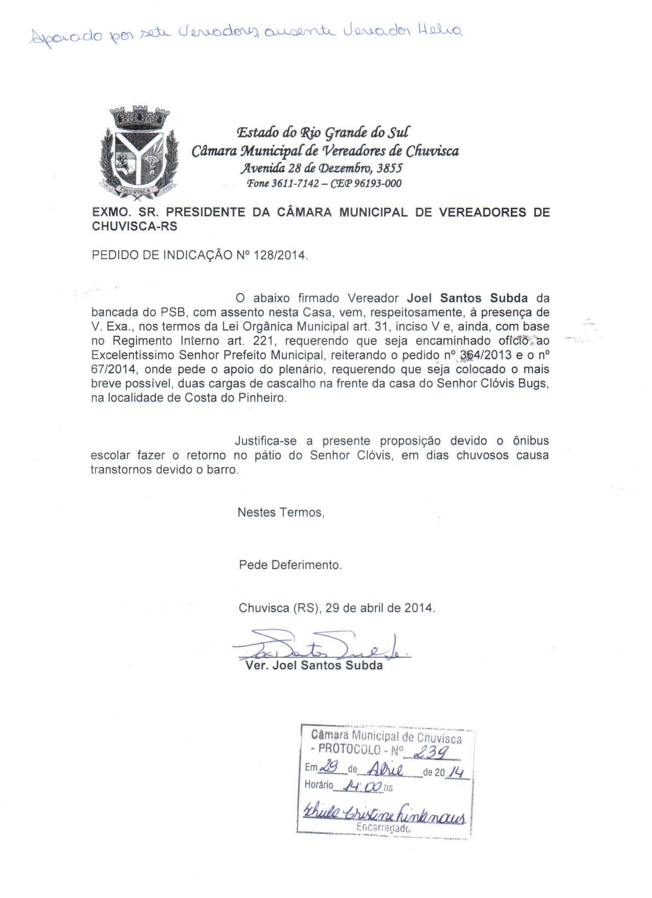 Titulo: Pedido de Indicação nº 128/2014