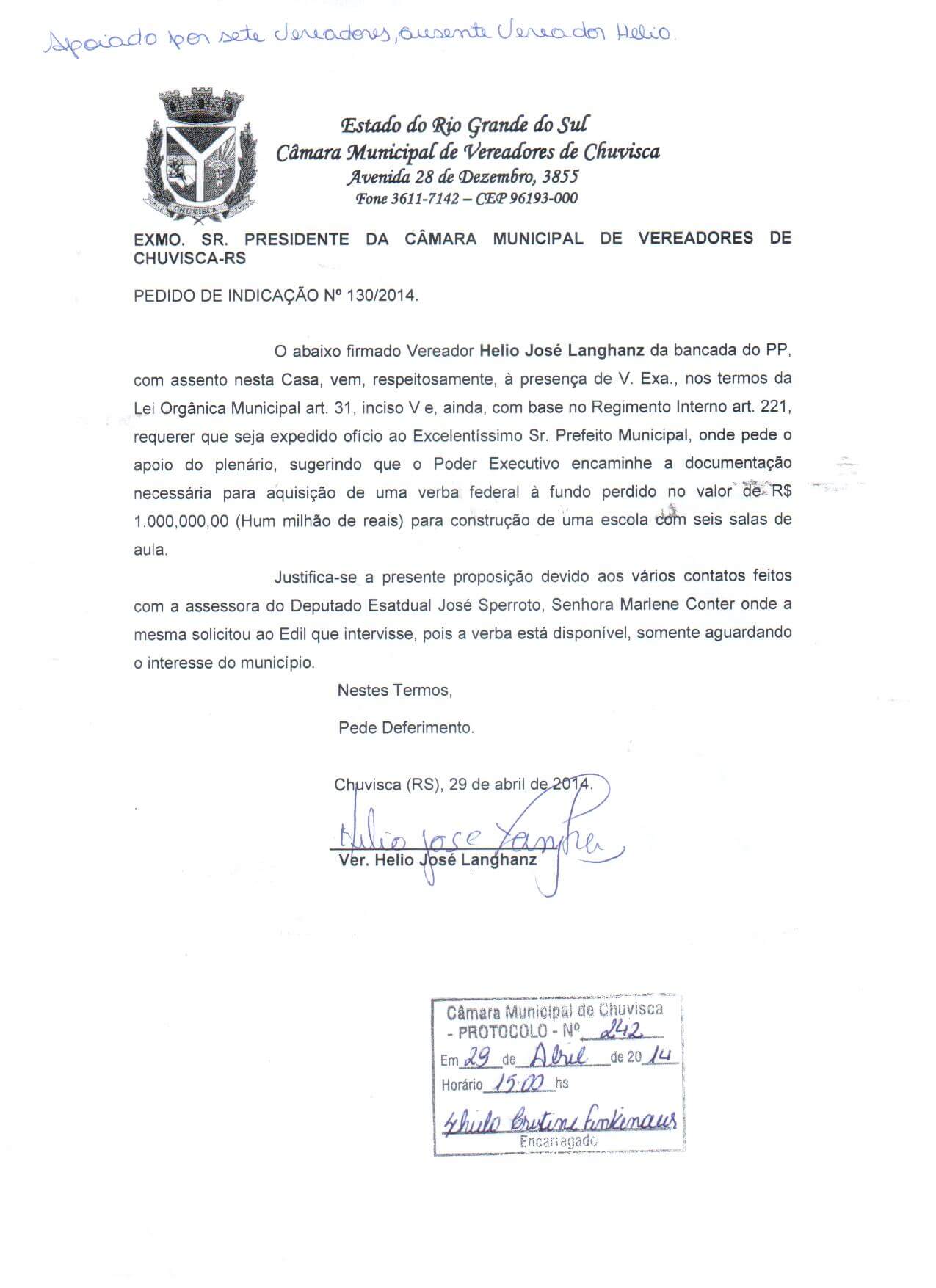 Titulo: Pedido de Indicação nº 130/2014