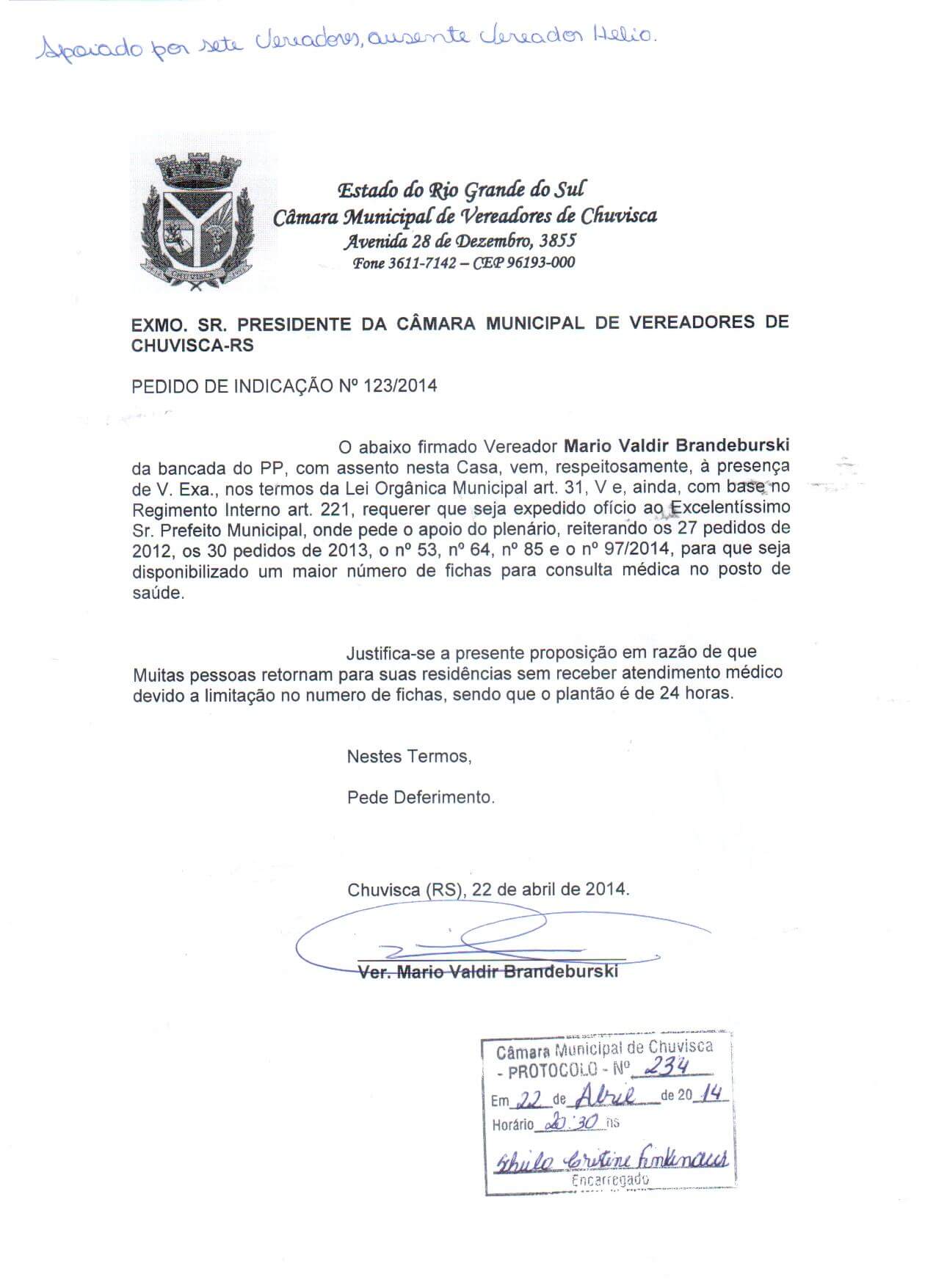 Titulo: Pedido de Indicação nº 123/2014