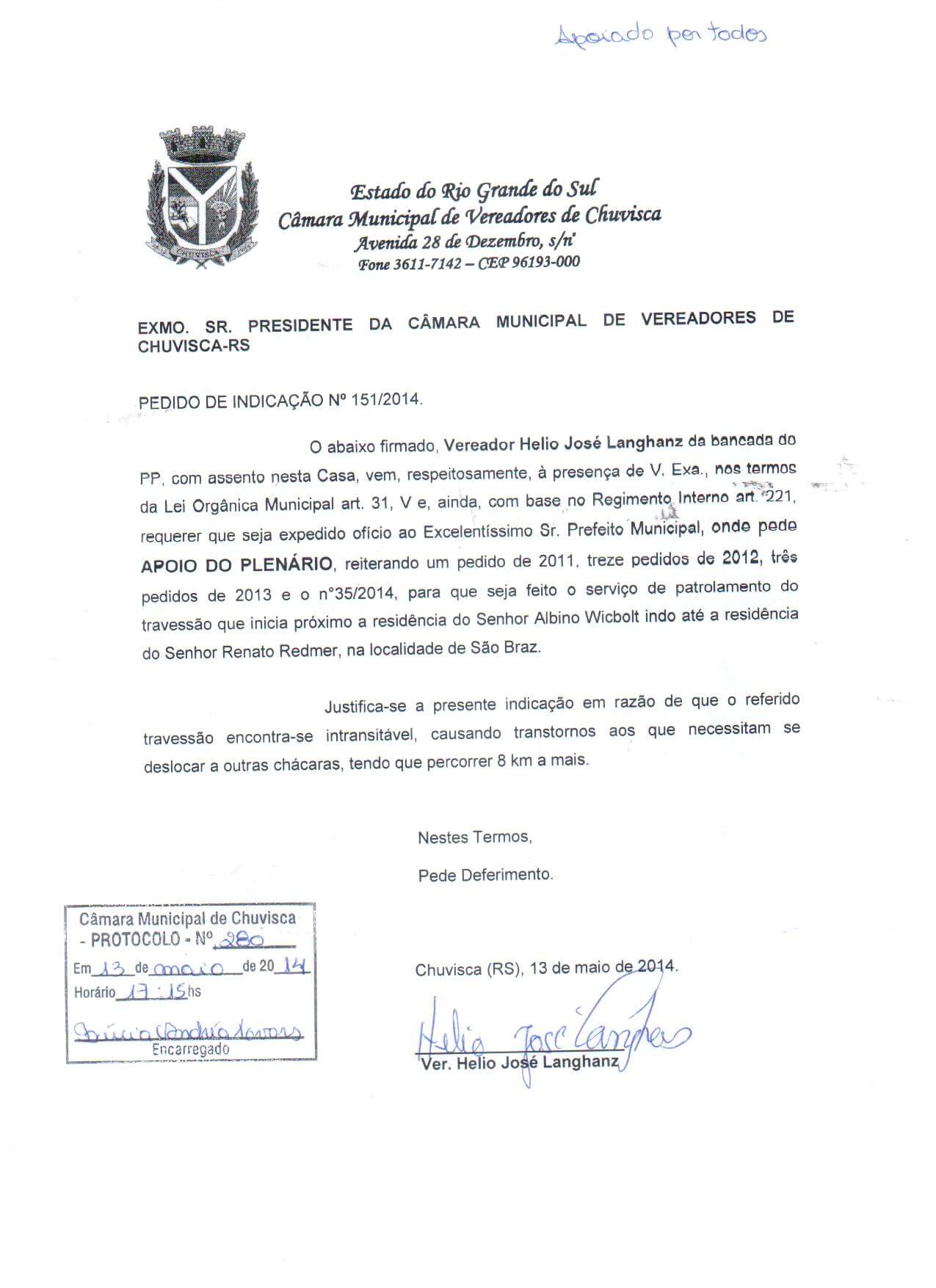 Vereador(es): Helio José Langhanz, Helio José Langhanz, Helio José Langhanz, Helio José Langhanz