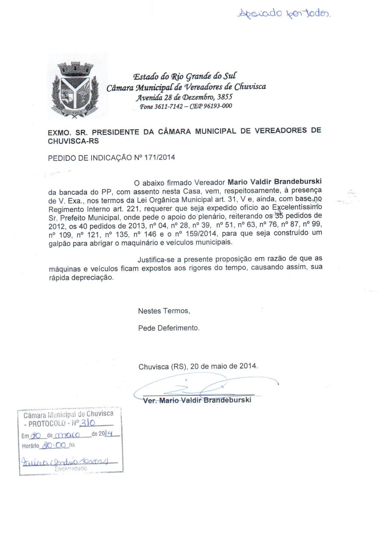Titulo: Pedido de Indicação nº 171/2014