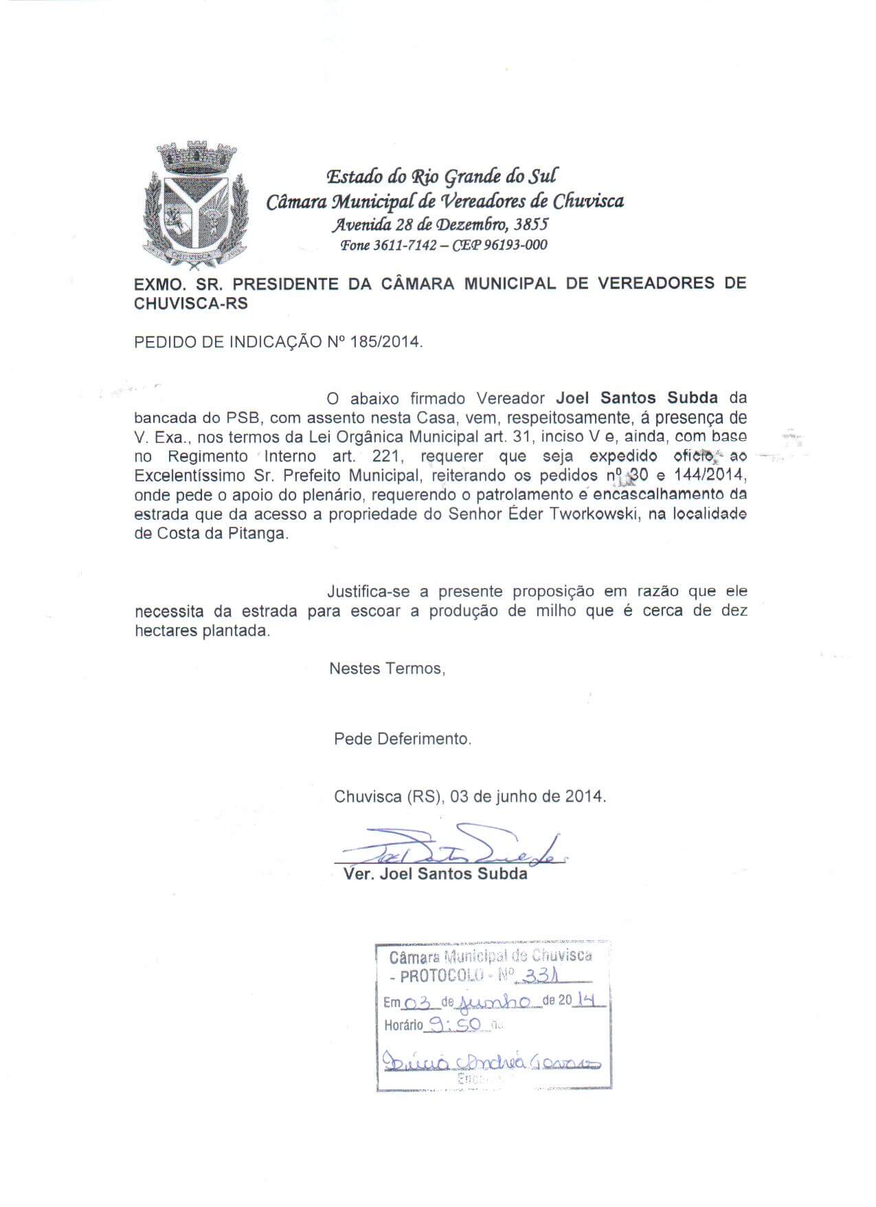 Titulo: Pedido de Indicação nº 185/2014