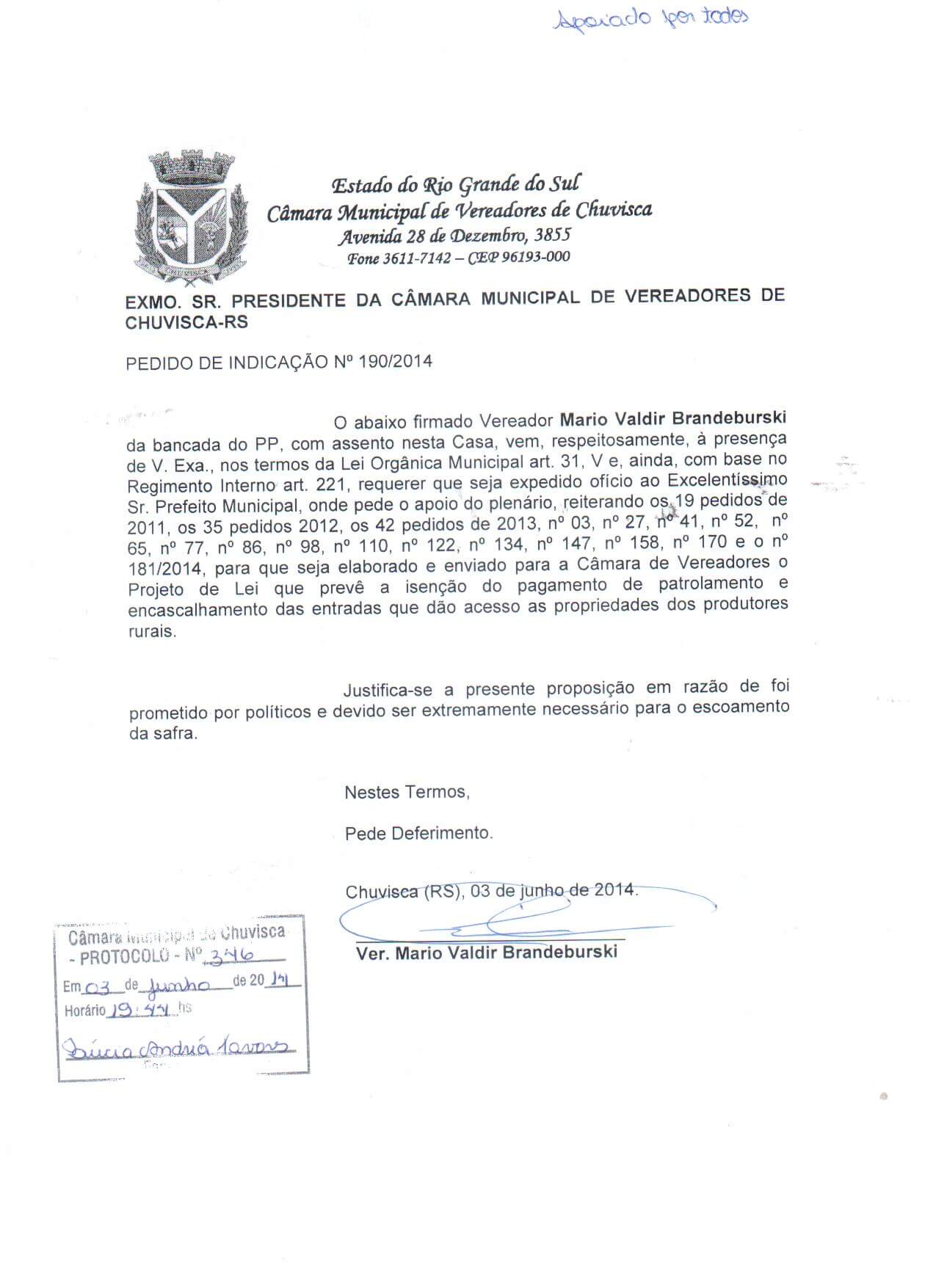 Vereador(es): Mario Valdir Brandeburski, Mario Valdir Brandeburski, Mario Valdir Brandeburski, Mario Valdir Brandeburski, Mario Valdir Brandeburski