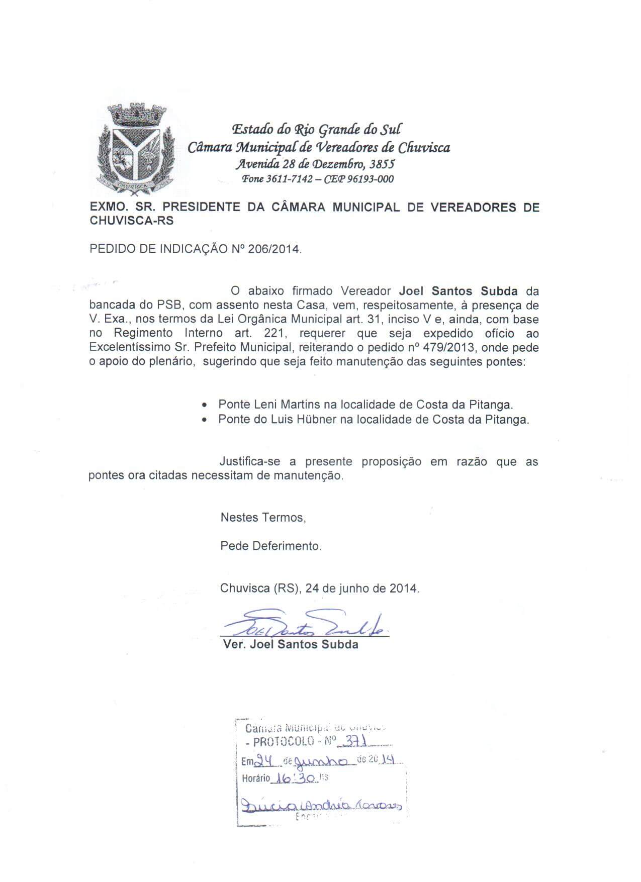 Titulo: Pedido de Indicação nº 206/2014