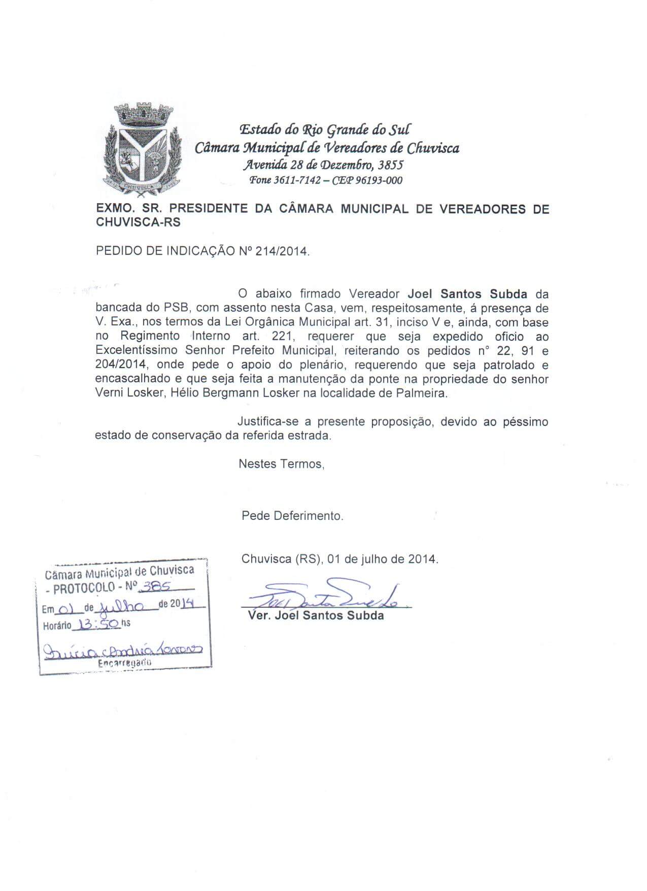 Titulo: Pedido de Indicação nº 214/2014