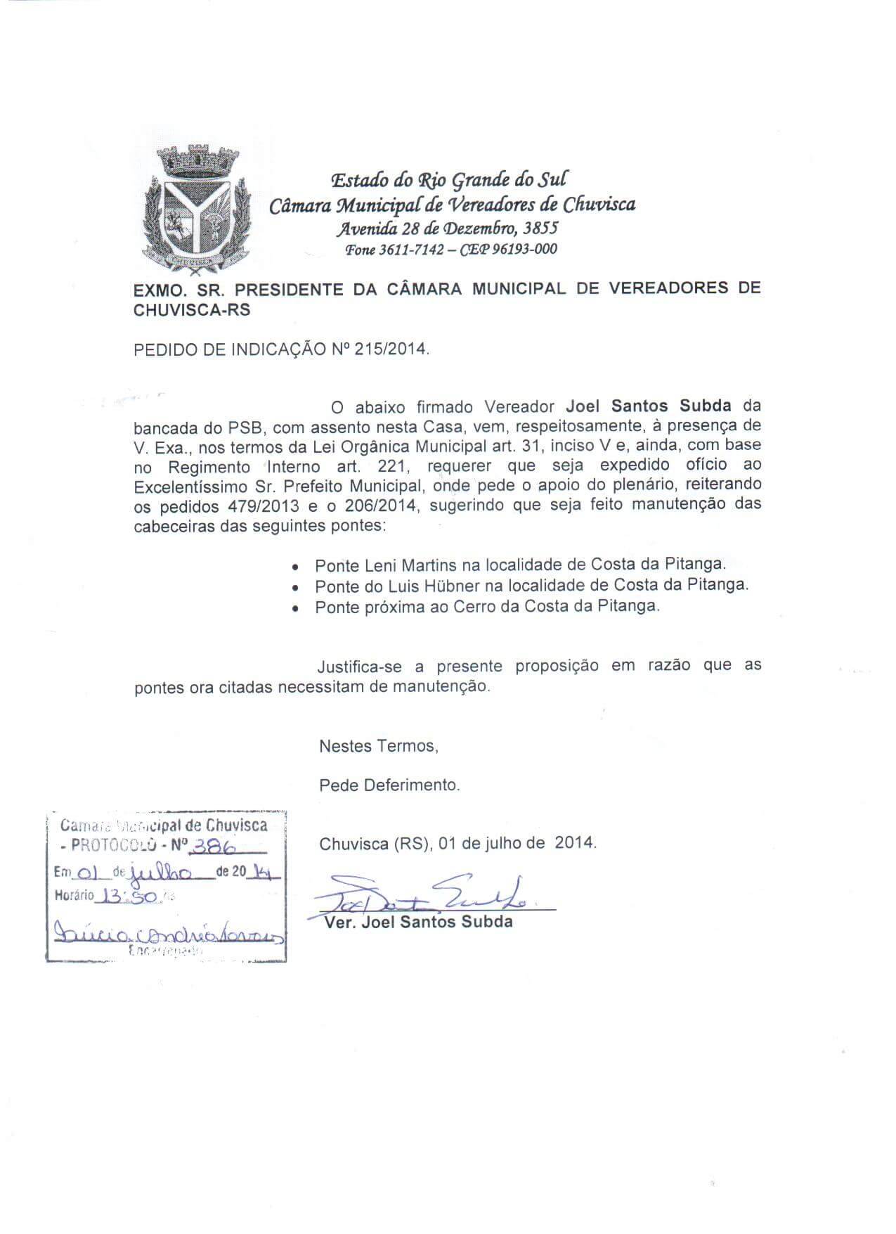 Titulo: Pedido de Indicação nº 215/2014