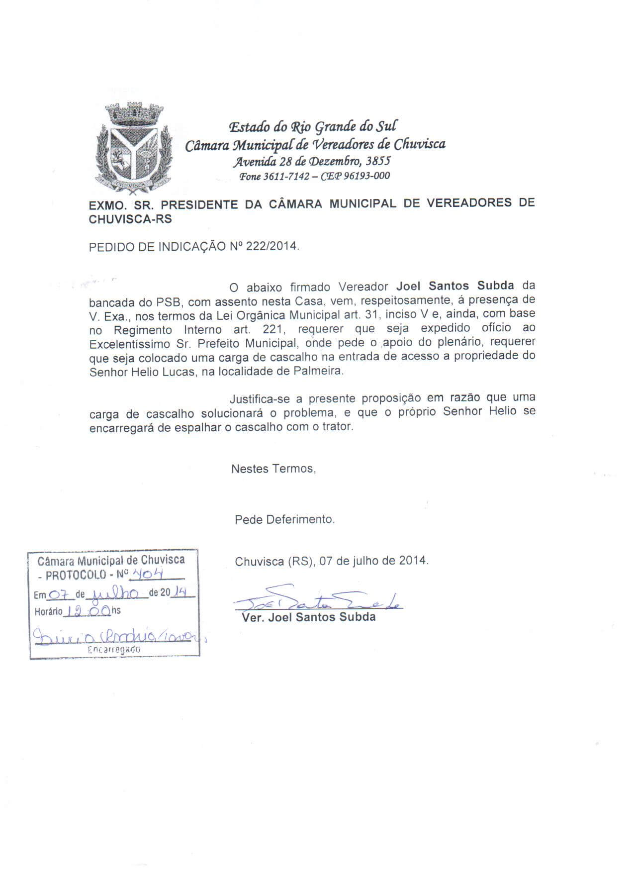 Vereador(es): Joel Santos Subda