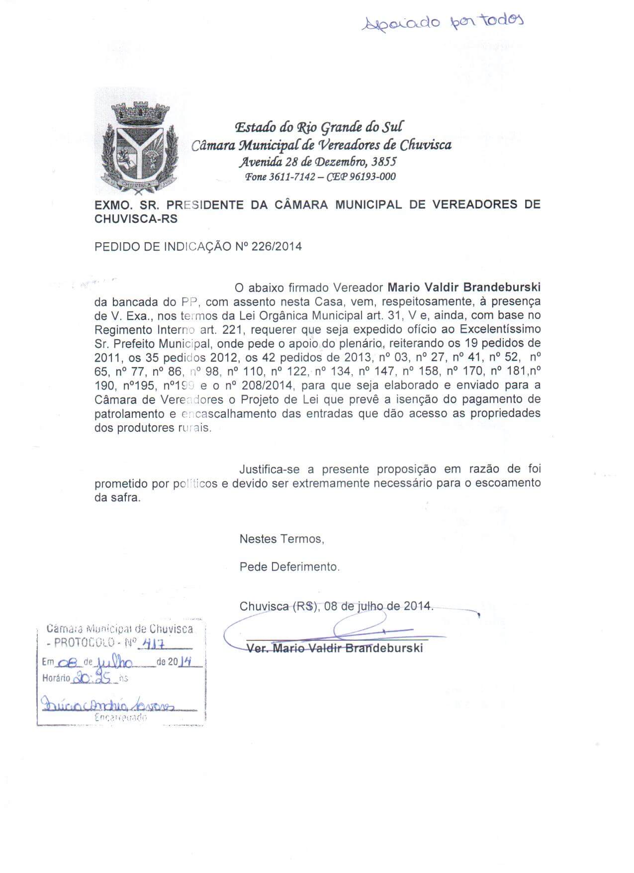 Titulo: Pedido de Indicação nº 226/2014