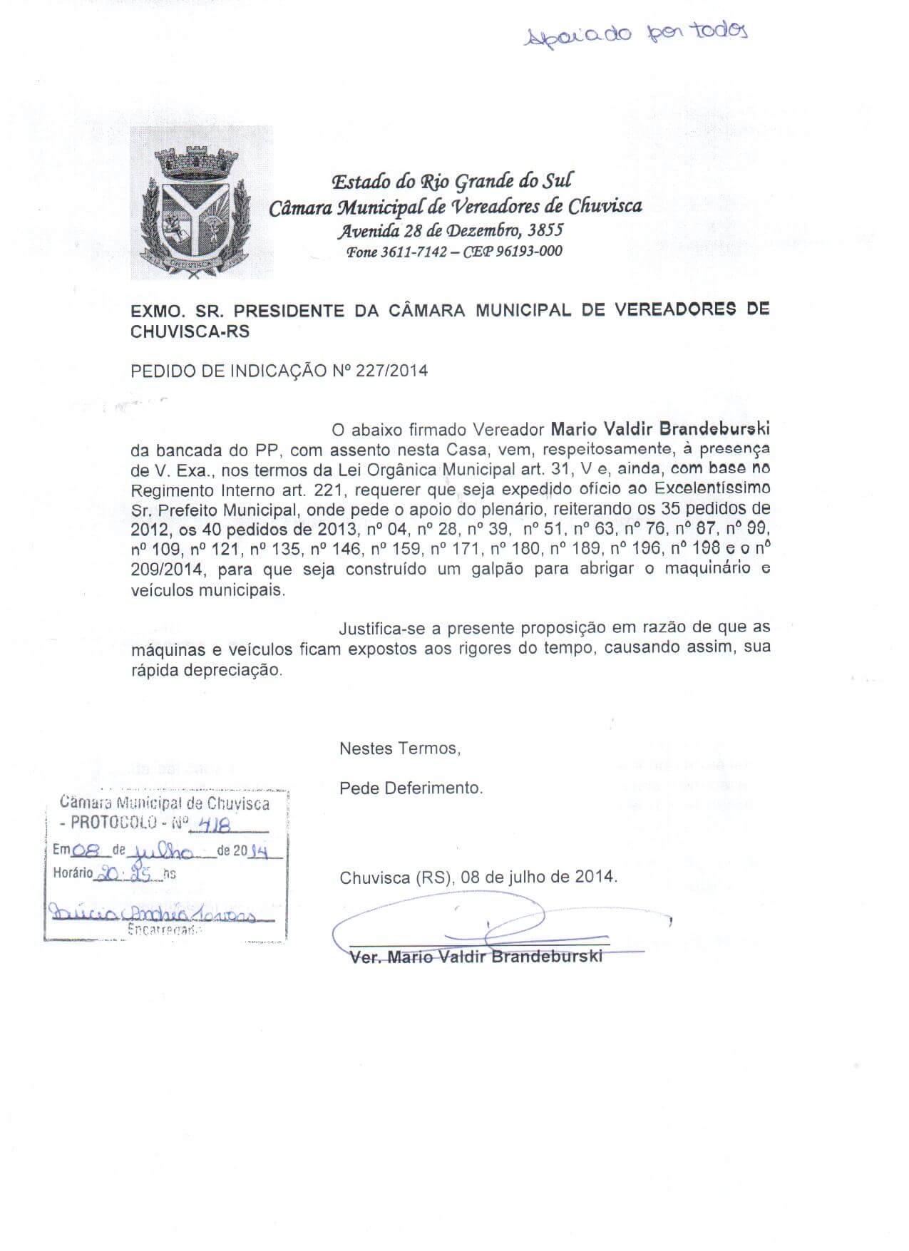 Vereador(es): Mario Valdir Brandeburski, Mario Valdir Brandeburski, Mario Valdir Brandeburski, Mario Valdir Brandeburski, Mario Valdir Brandeburski