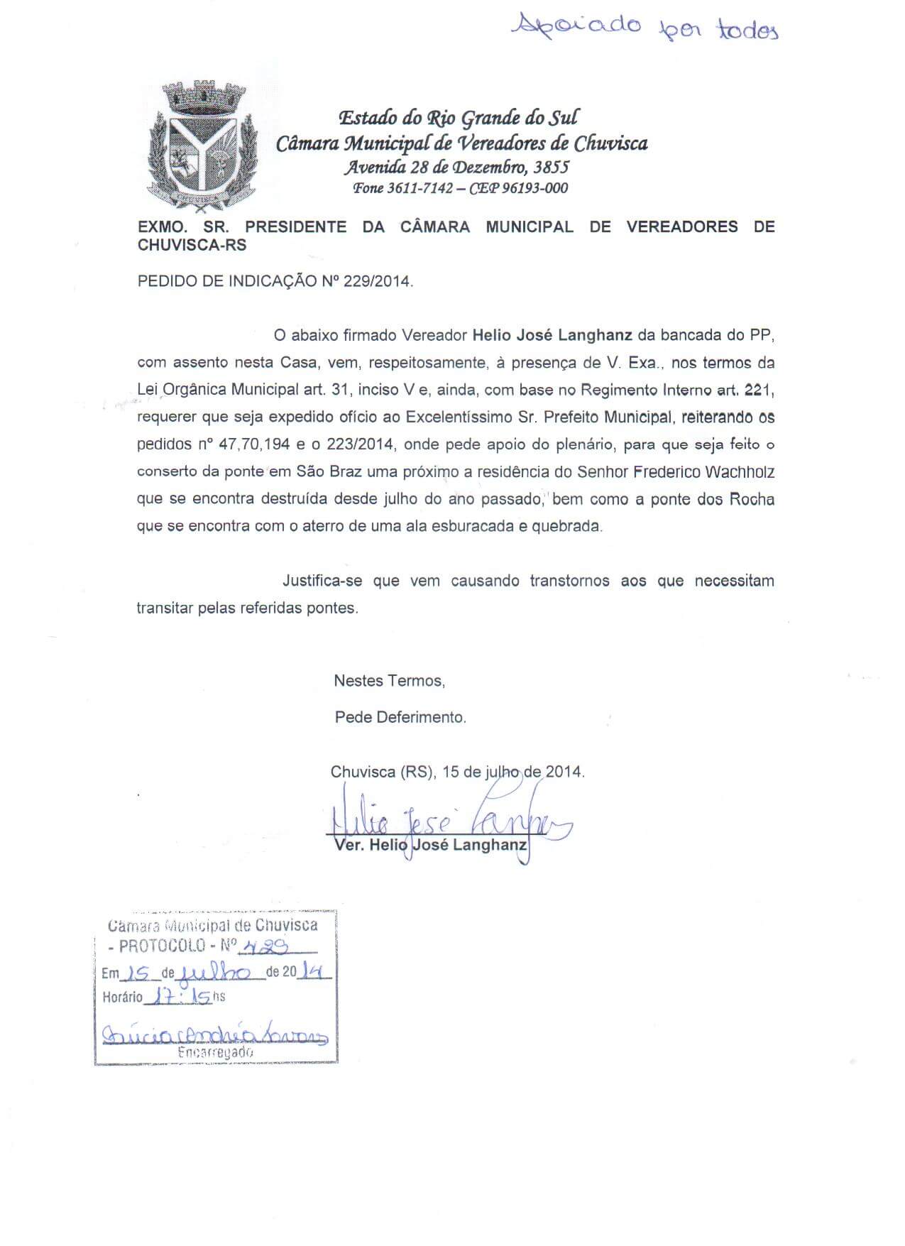 Vereador(es): Helio José Langhanz, Helio José Langhanz, Helio José Langhanz, Helio José Langhanz