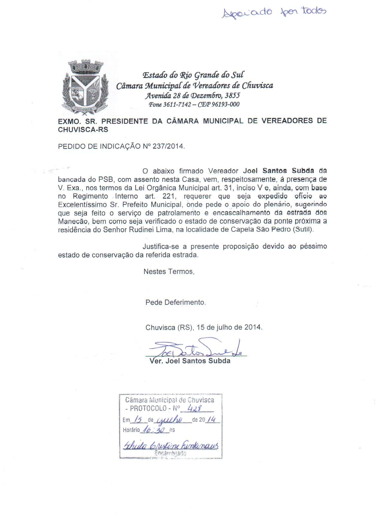 Vereador(es): Joel Santos Subda