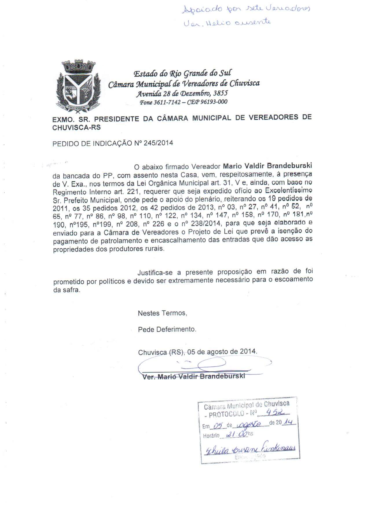 Titulo: Pedido de Indicação nº 245/2014
