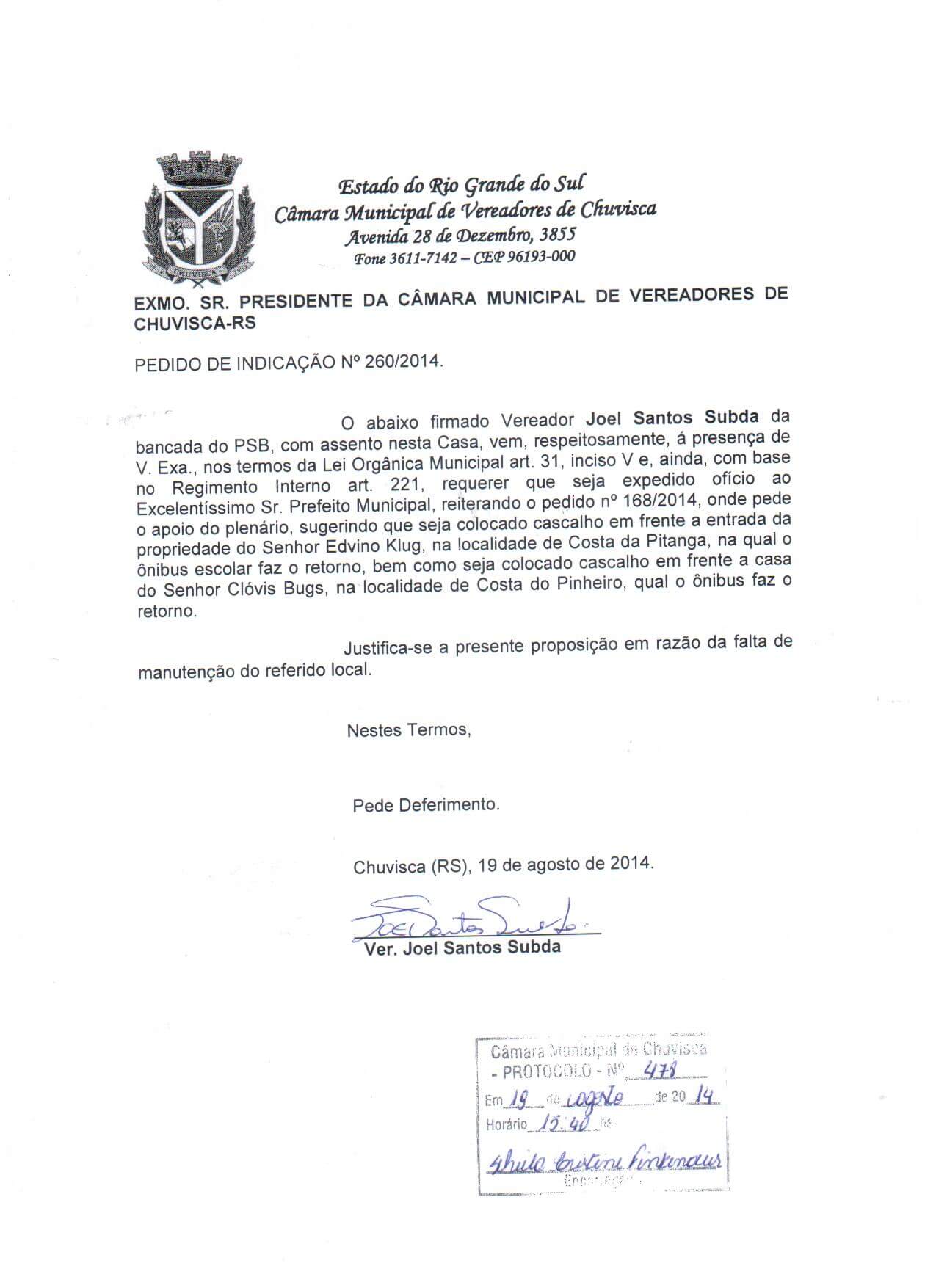 Titulo: Pedido de Indicação nº 260/2014