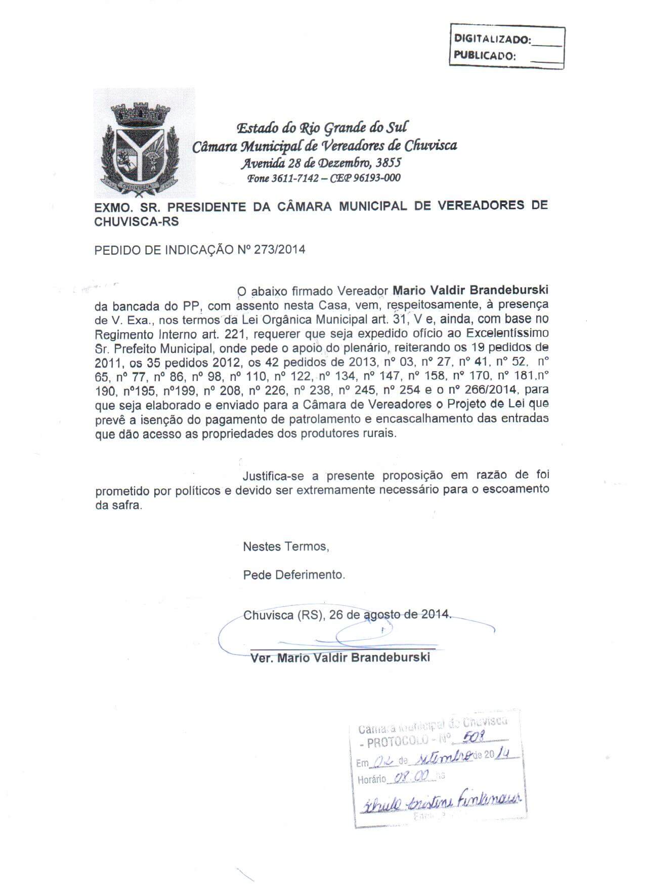 Titulo: Pedido de Indicação nº 273/2014