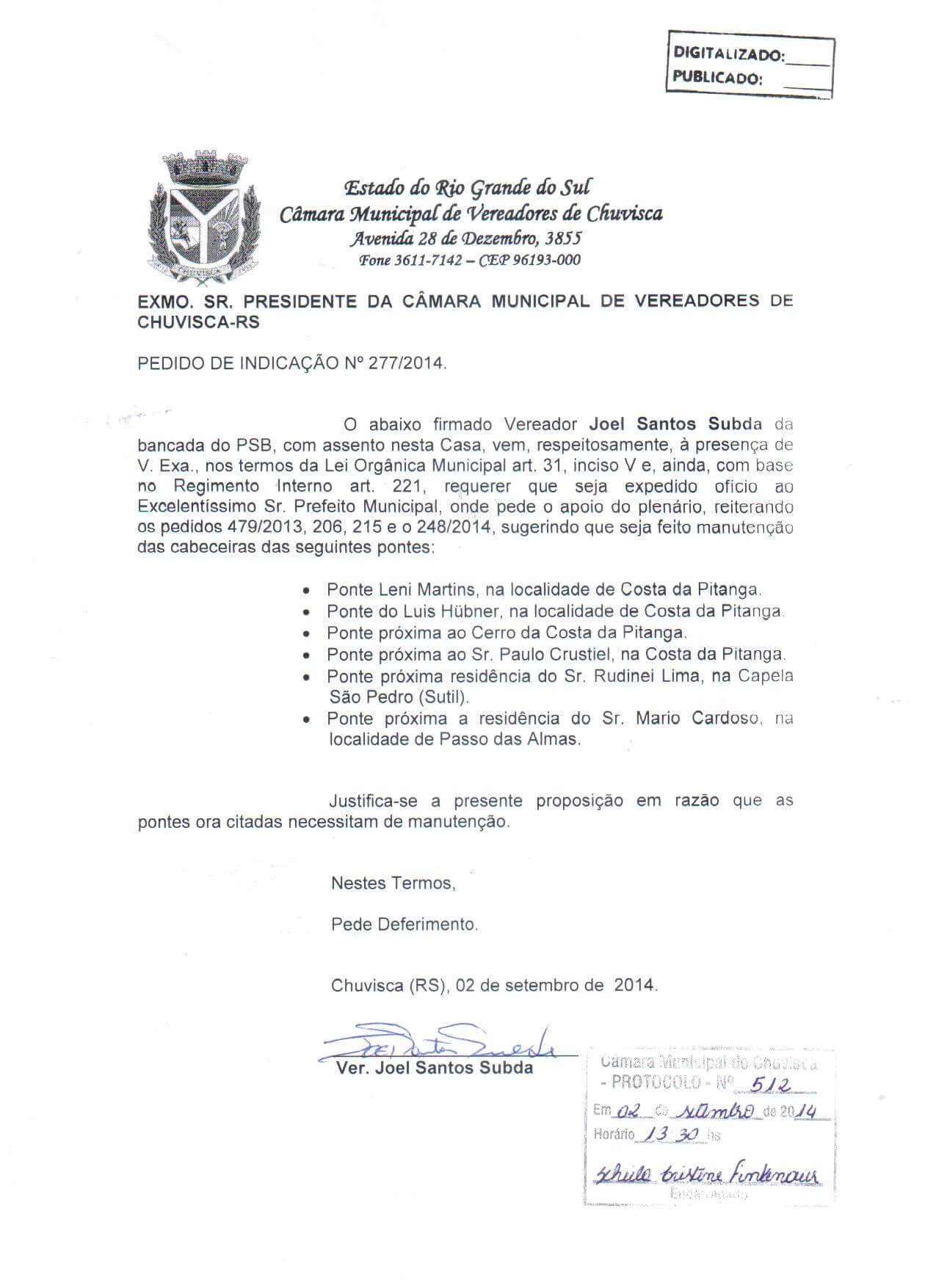 Titulo: Pedido de Indicação nº 277/2014